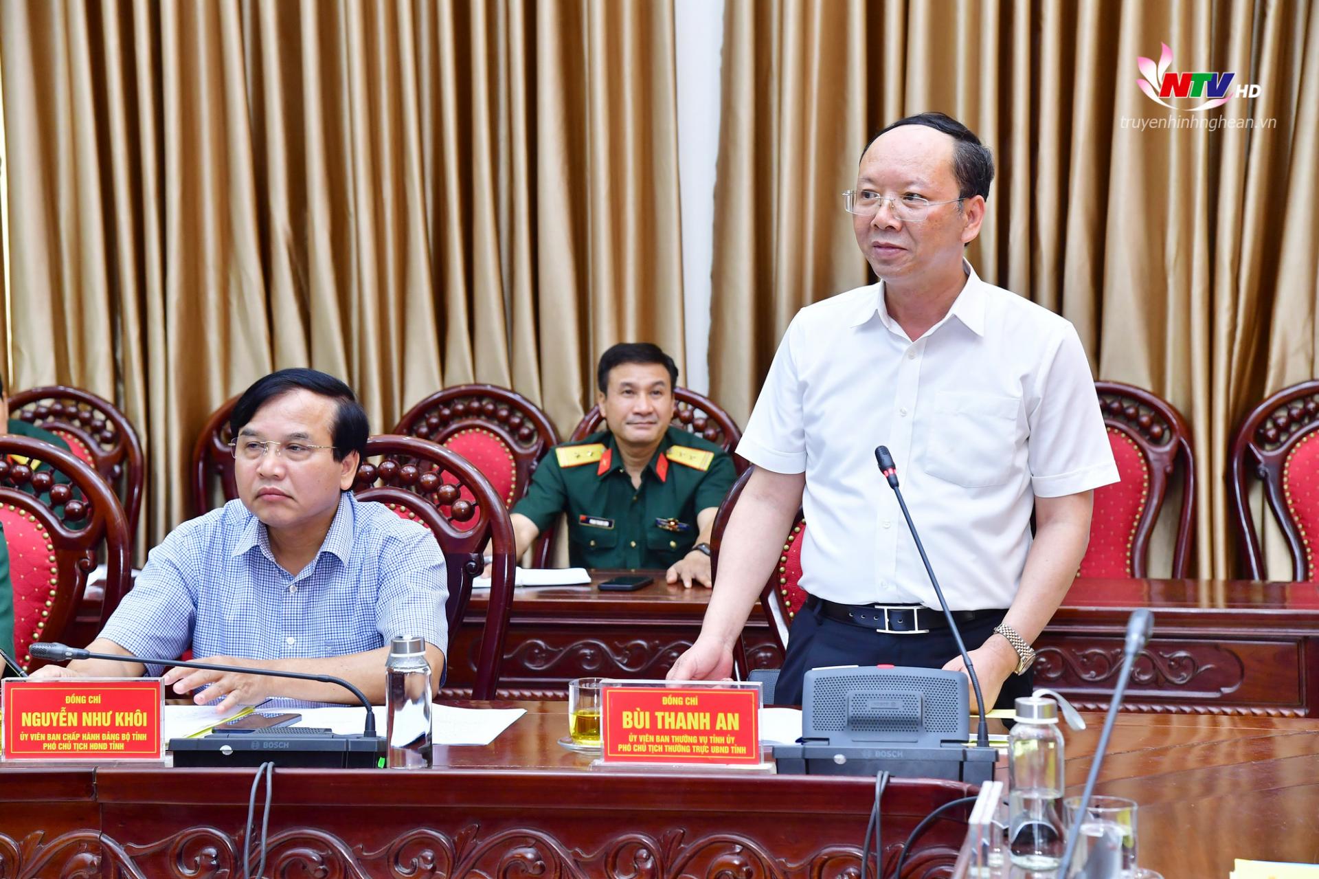 | Đồng chí Bùi Thanh An - Ủy viên Ban Thường vụ Tỉnh ủy, Phó Chủ tịch Thường trực UBND tỉnh phát biểu tại buổi làm việc. |