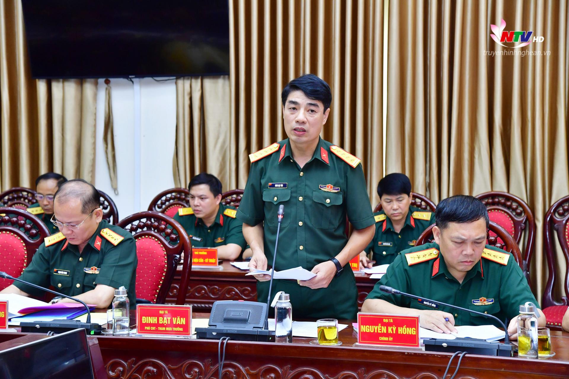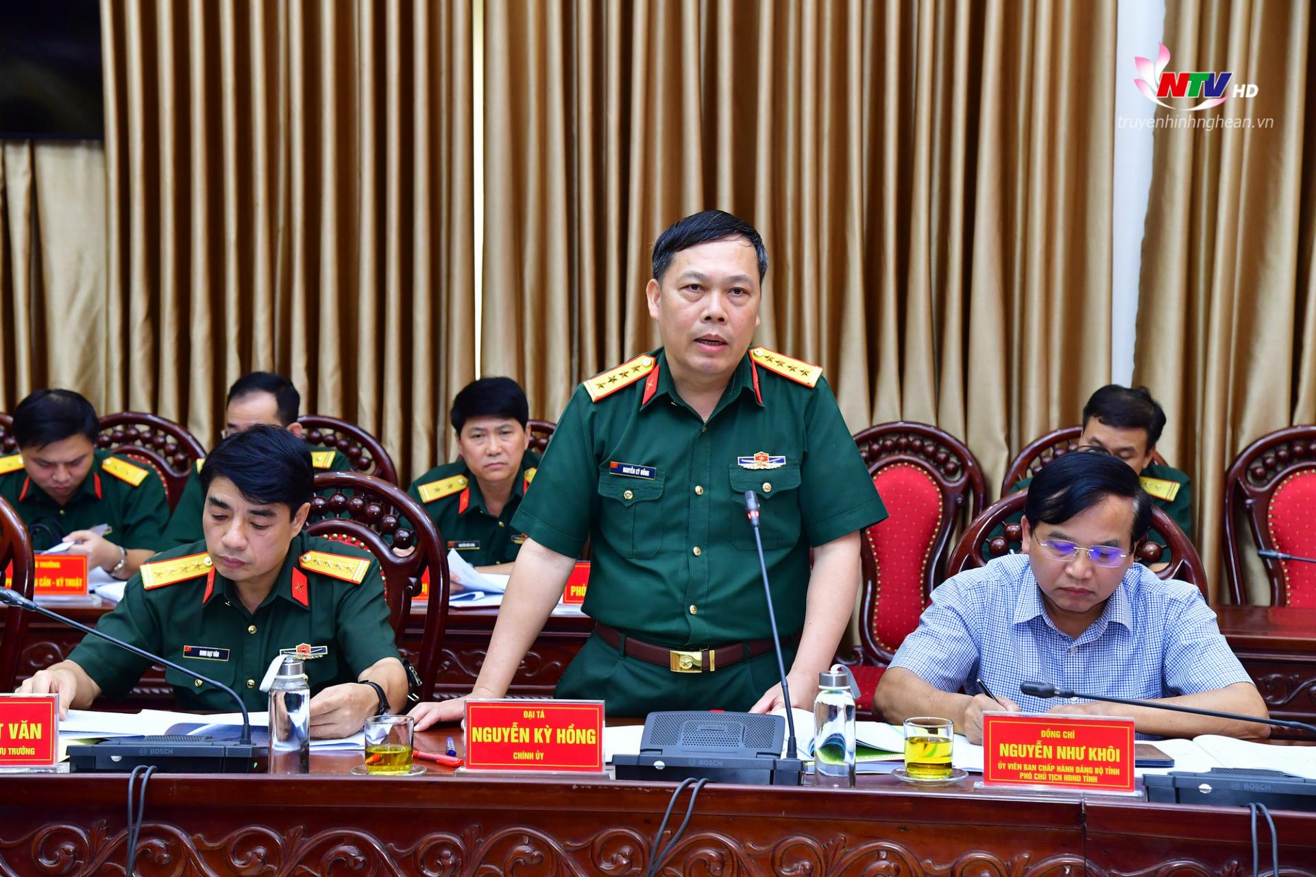 | Đại tá Nguyễn Kỳ Hồng - Chính ủy Bộ Chỉ huy Quân sự tỉnh phát biểu tại buổi làm việc |
