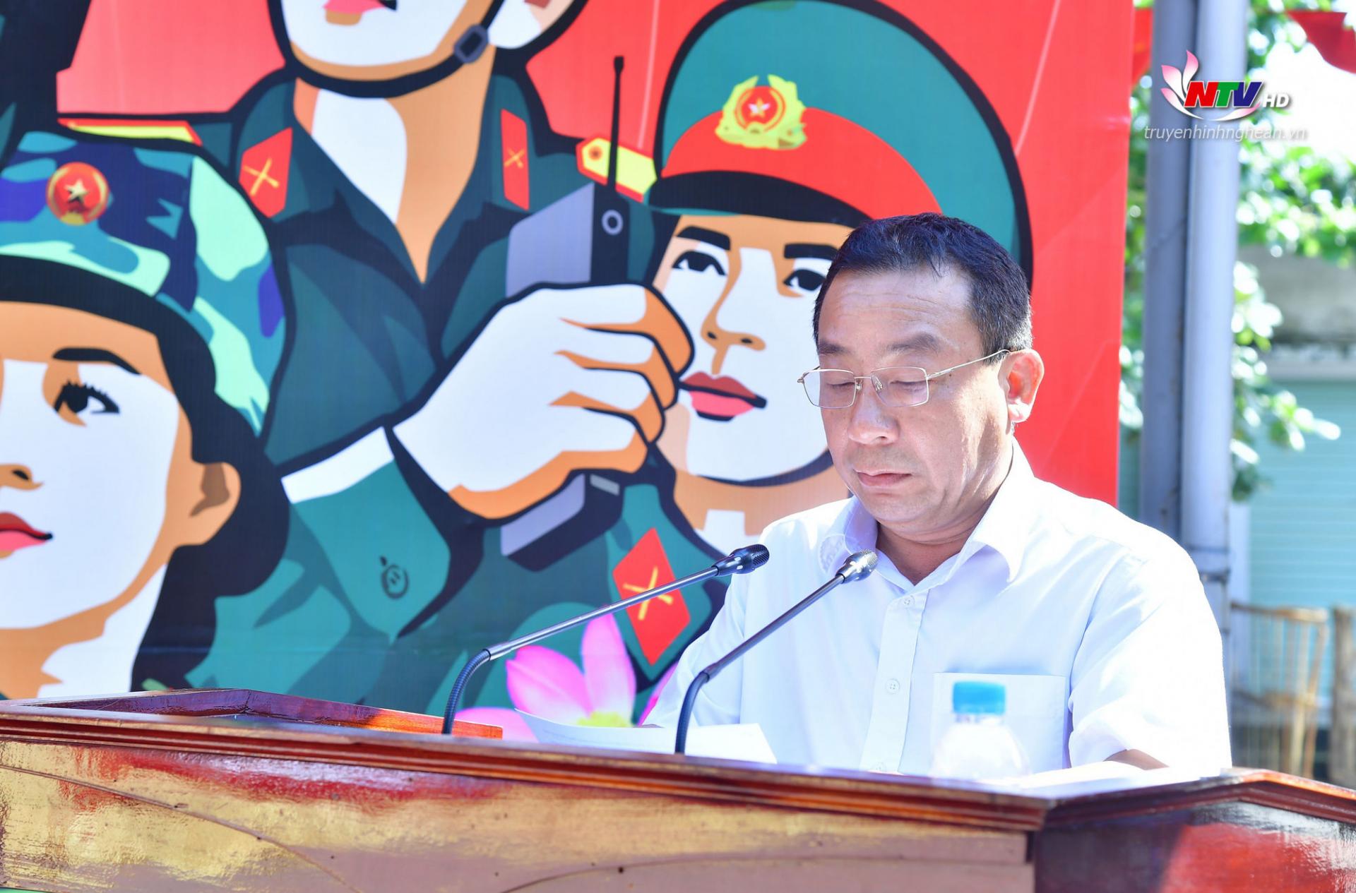 | Đồng chí Nguyễn Văn Đệ - Phó Chủ tịch UBND tỉnh Nghệ An phát biểu chào mừng lực lượng tham gia diễu binh, diễu hành dừng chân nghỉ tại tỉnh Nghệ An. |