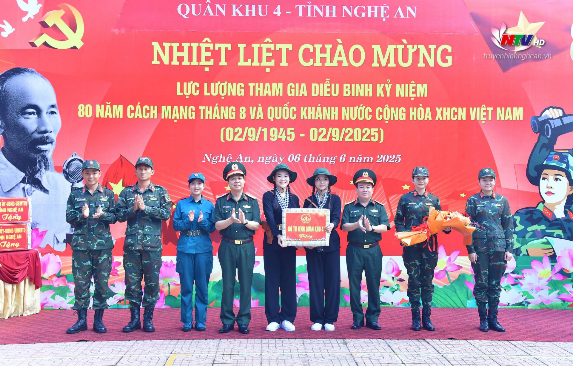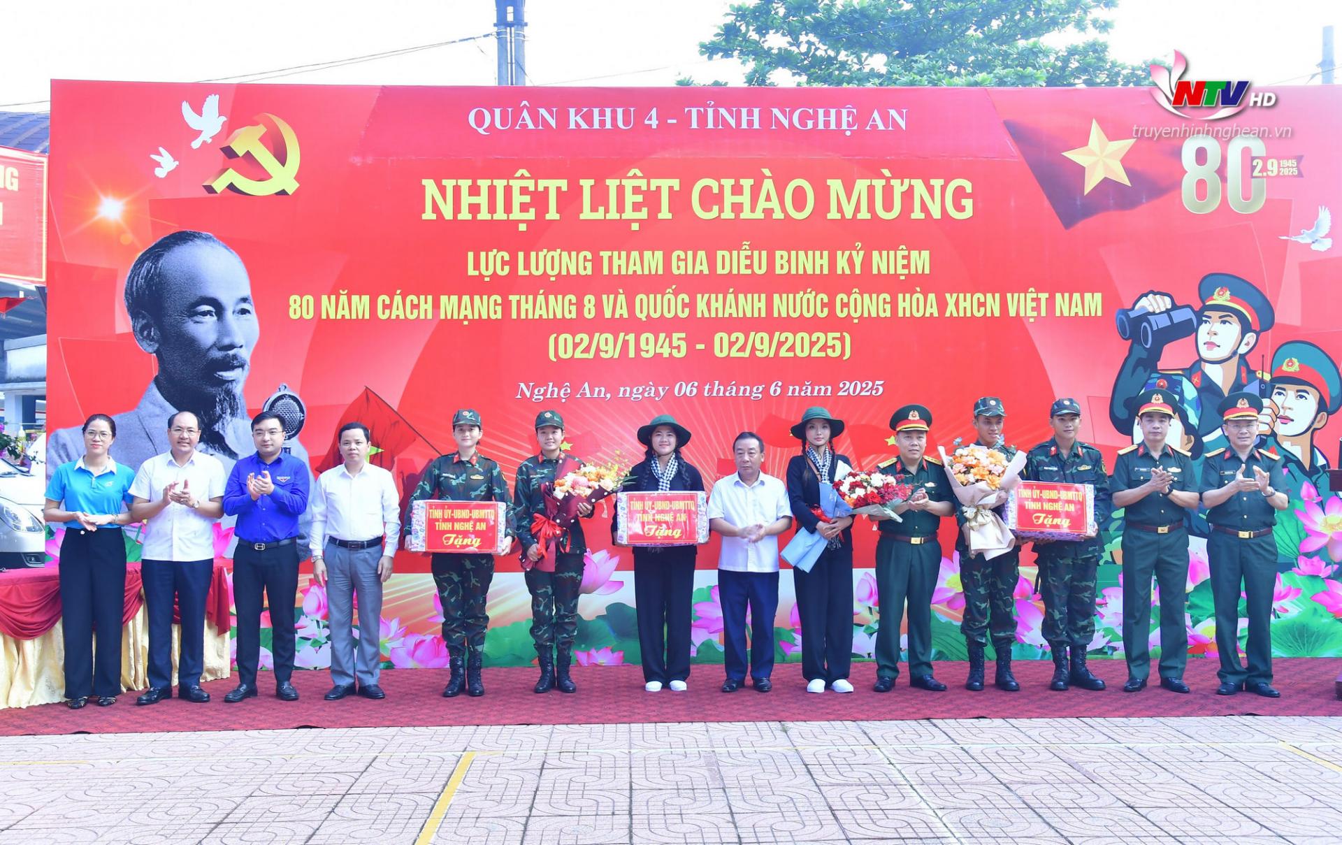 | Lãnh đạo tỉnh Nghệ An tặng quà, động viên lực lượng tham gia diễu binh. |