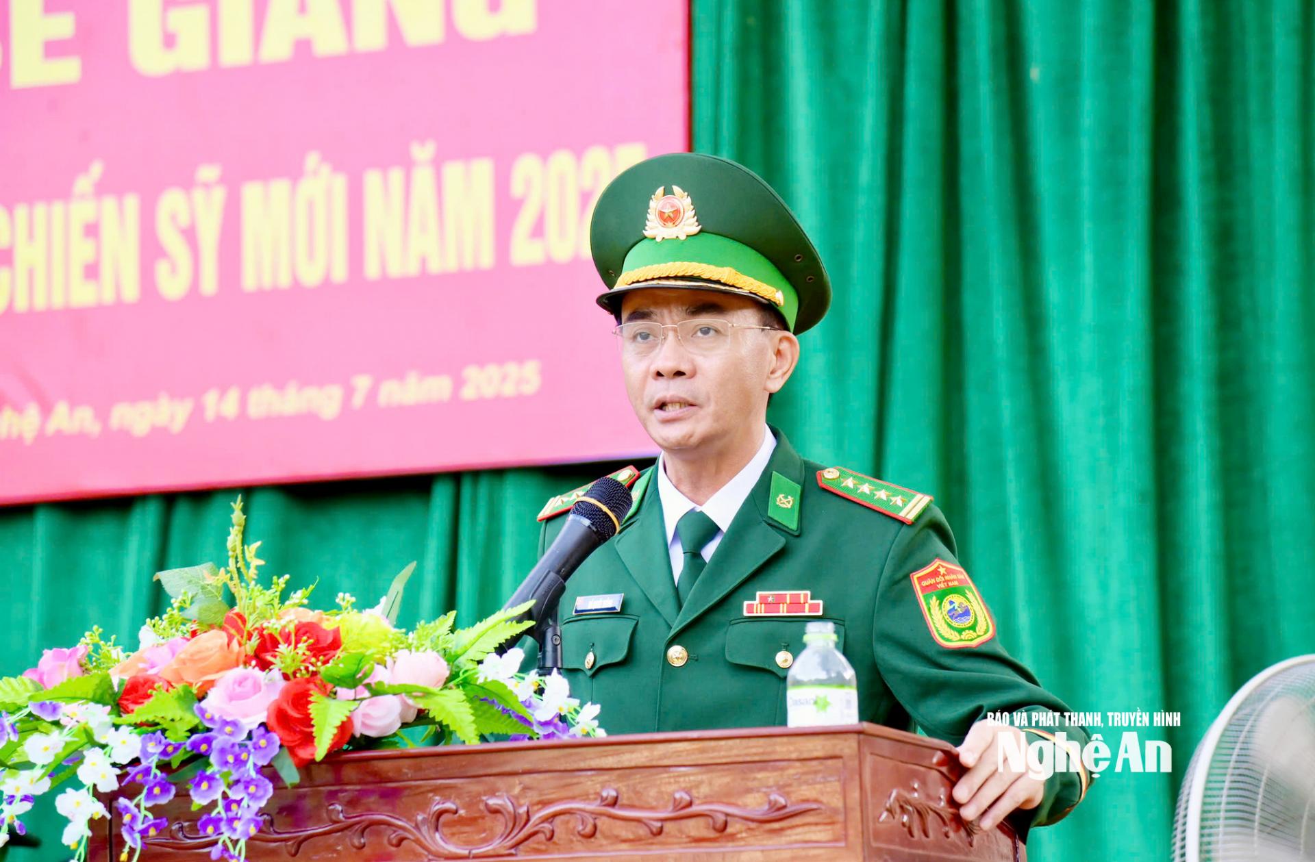 | Đại tá Hồ Quyết Thắng, Phó Chỉ huy trưởng, Tham mưu trưởng Ban Chỉ huy BĐBP tỉnh Nghệ An phát biểu chỉ đạo tại lễ bế giảng |