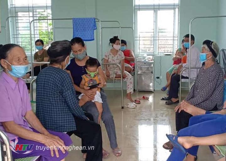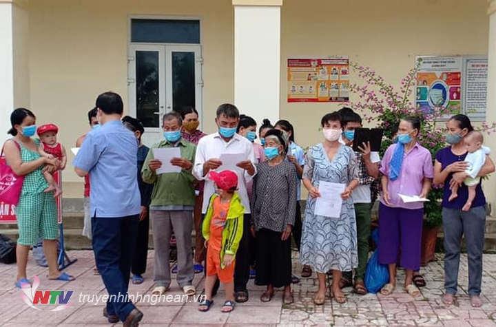 | Lãnh đạo Trung tâm y tế huyện Quỳnh Lưu đọc quyết định hết thời gian cách ly đối với 24 trường hợp F1 và F2 xã An Hòa. |