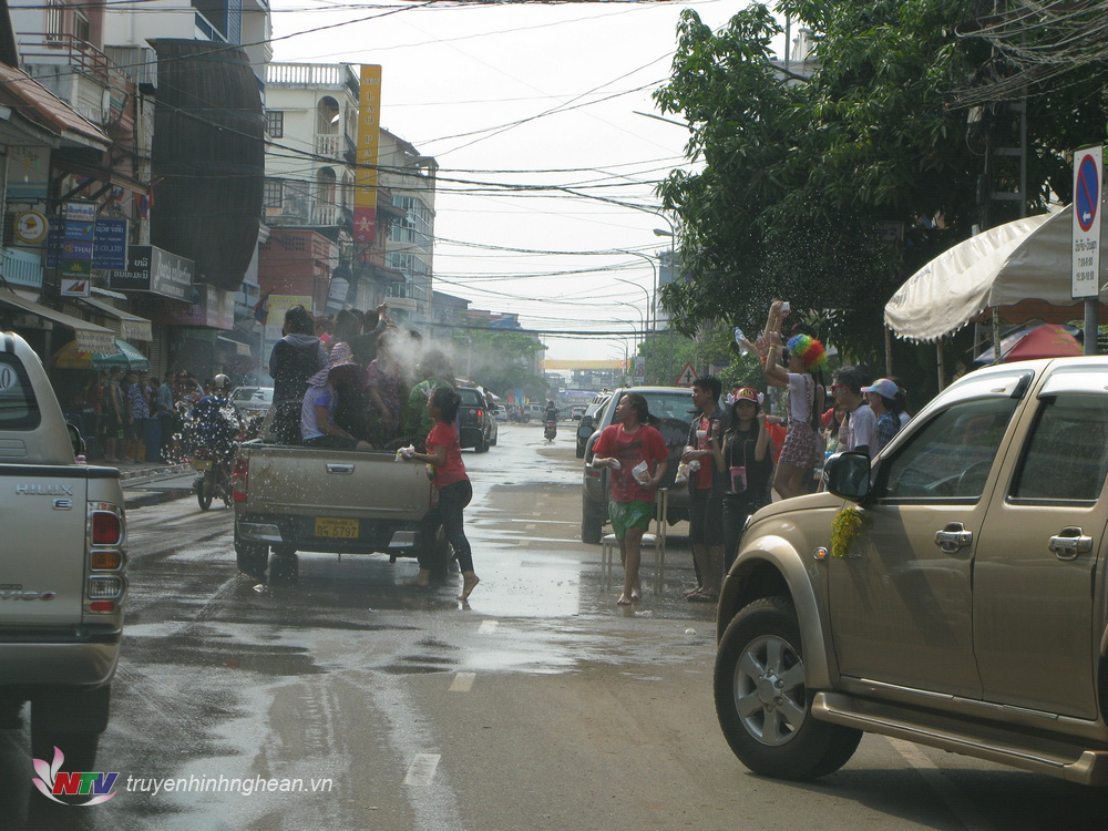 Vui nhất trong Tết Bounpimai là trò chơi té nước, đầu tiên phải là các thành viên trong nhà tưới nước thơm cho nhau, sau đó người người, nhà nhà đổ ra đường, ken đầy các tuyến phố, từng nhóm, lẫn cả du khách sẵn sàng các thùng nước, vòi nước, xô chậu phun tưới vào nhau cũng như tưới vào người đi đường làm náo nhiệt cả không gian rộng lớn. Người Lào quan niệm, ai té được nhiều nước nhất và ai nhận được nhiều nước làm ướt nhất, thì năm đó sẽ gặp nhiều may mắn, sức khỏe dồi dào, làm ăn phát đạt, gia đình hạnh phúc, đất nước bình yên.