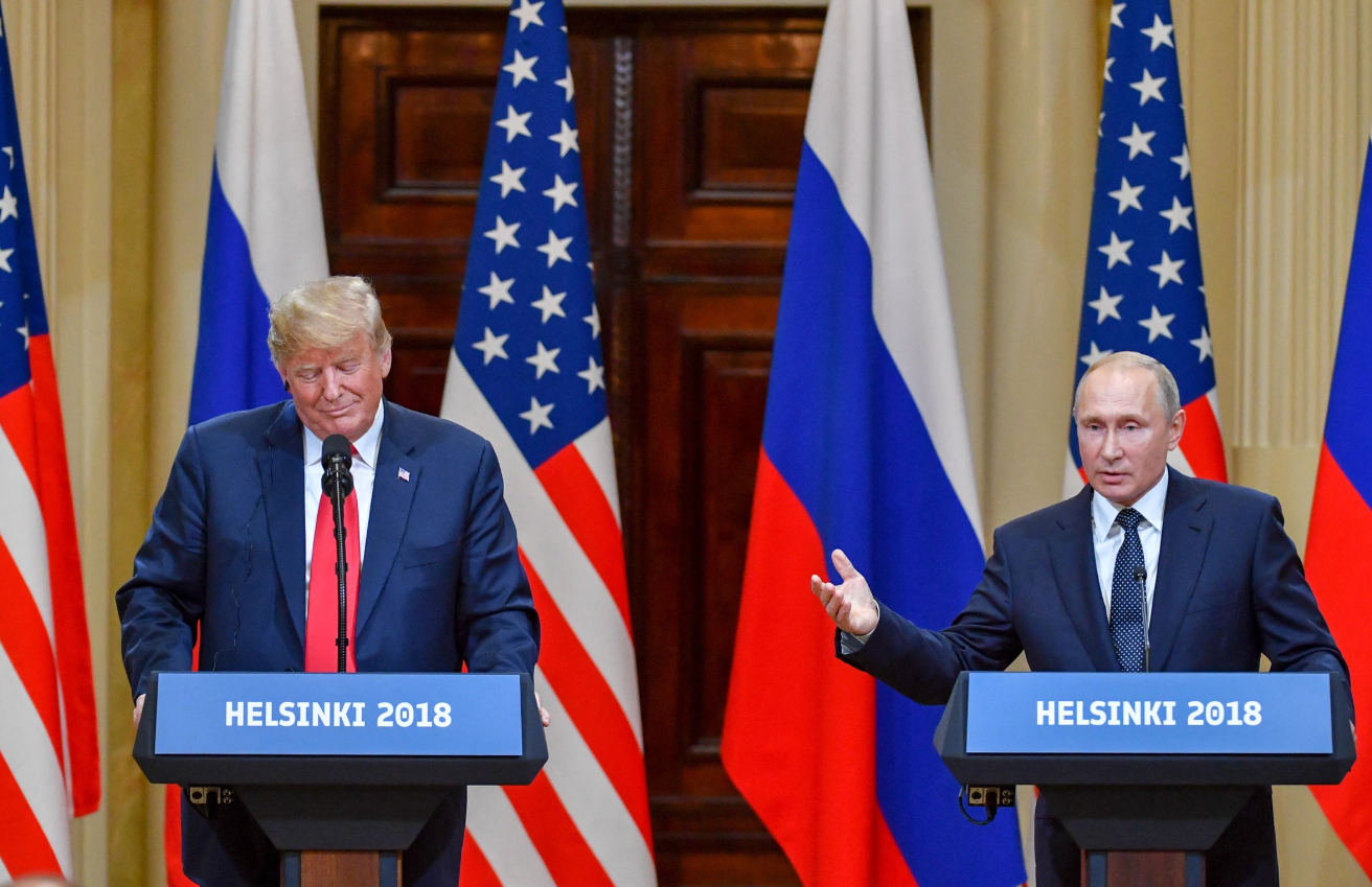| Tổng thống Mỹ Donald Trump (trái) và người đồng cấp Nga Vladimir Putin trong cuộc họp báo tại Helsinki, Phần Lan, hồi tháng 7/2018. Ảnh: AFP |
