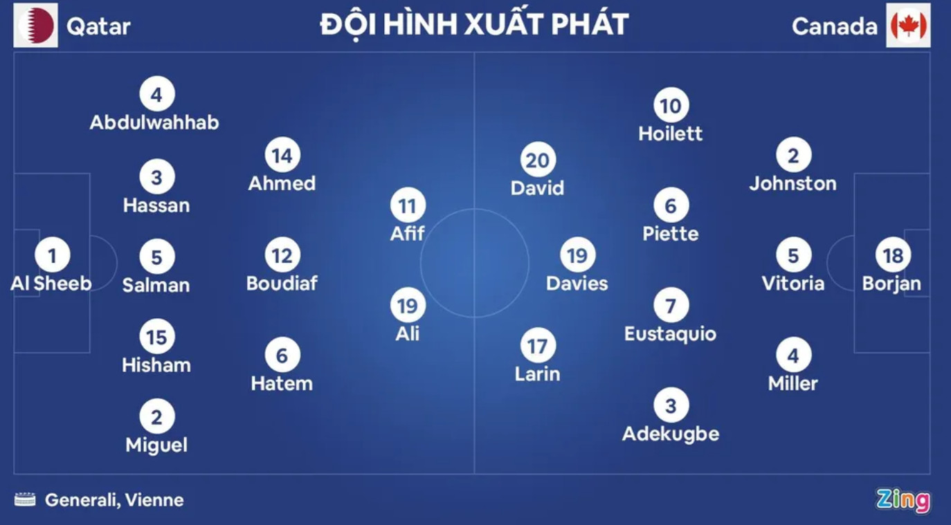 Qatar nhập cuộc đầy bị động trước những pha leo biên tốc độ của Canada, để rồi nhận 2 bàn thua chỉ sau 13 phút bóng lăn và đều từ những tình huống bóng bổng bên cánh trái theo hướng tấn công của đội chủ nhà.