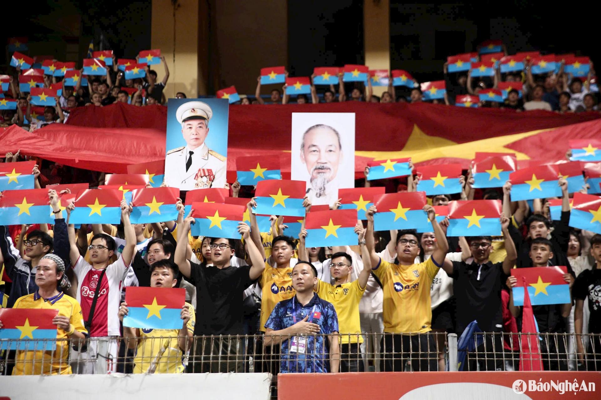 Những khán giả tại sân Hàng Đẫy nói chung và những cổ động viên xứ Nghệ nói riêng đã tạo nên những cảm xúc không thể tuyệt vời hơn. Đó là màn hát Quốc ca, đó là những lá cờ Tổ quốc và cả những tình huống dậy sóng trên khán đài tạo nên không khí hào hùng chào mừng Ngày Giải phóng Miền Nam, thống nhất đất nước.