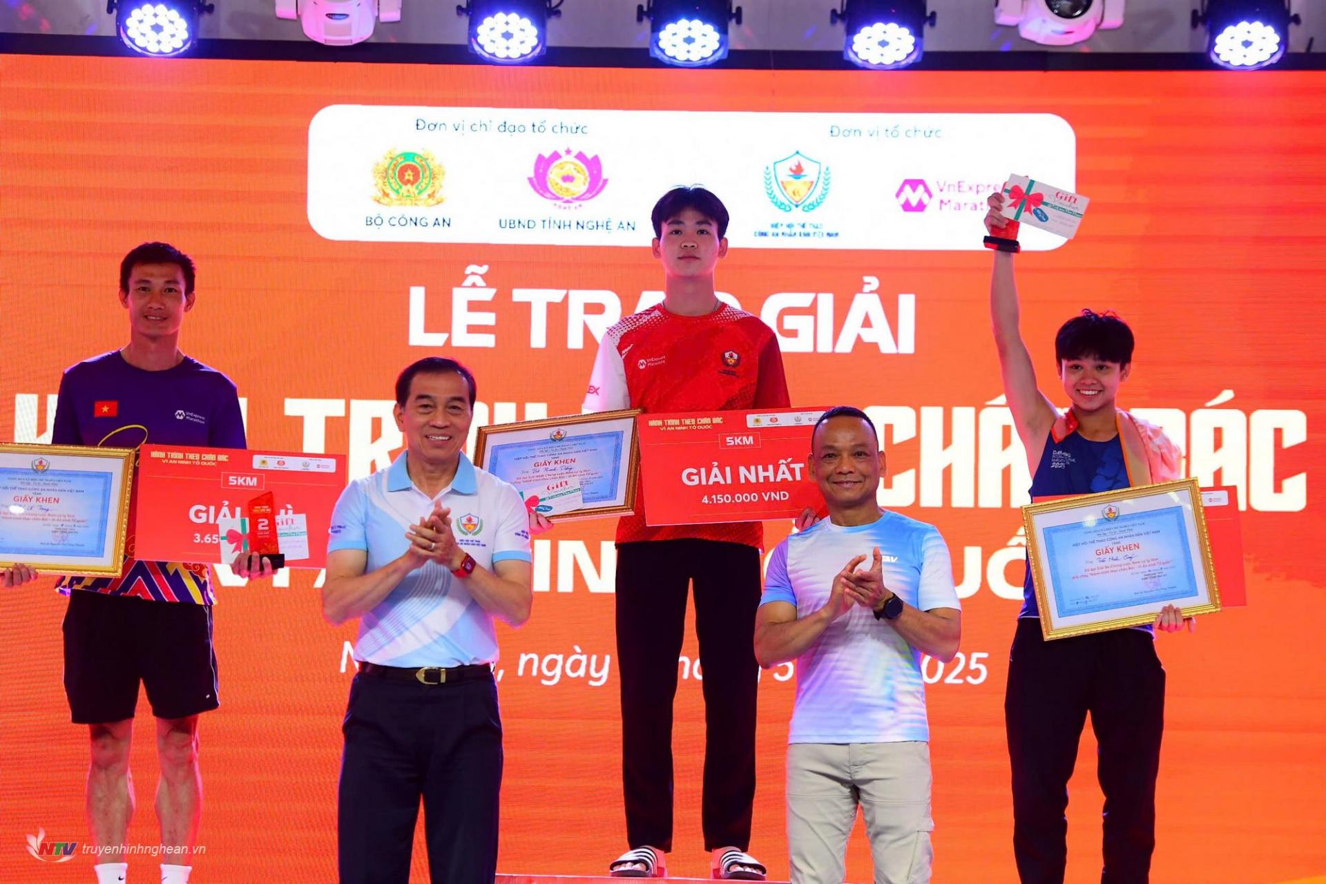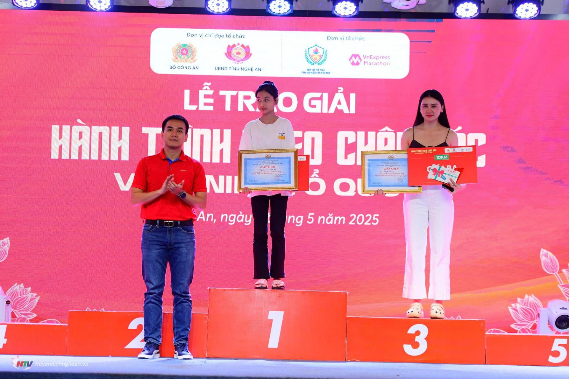 | BTC trao giải cho các VĐV đạt giải ở các cự ly thi đấu. |