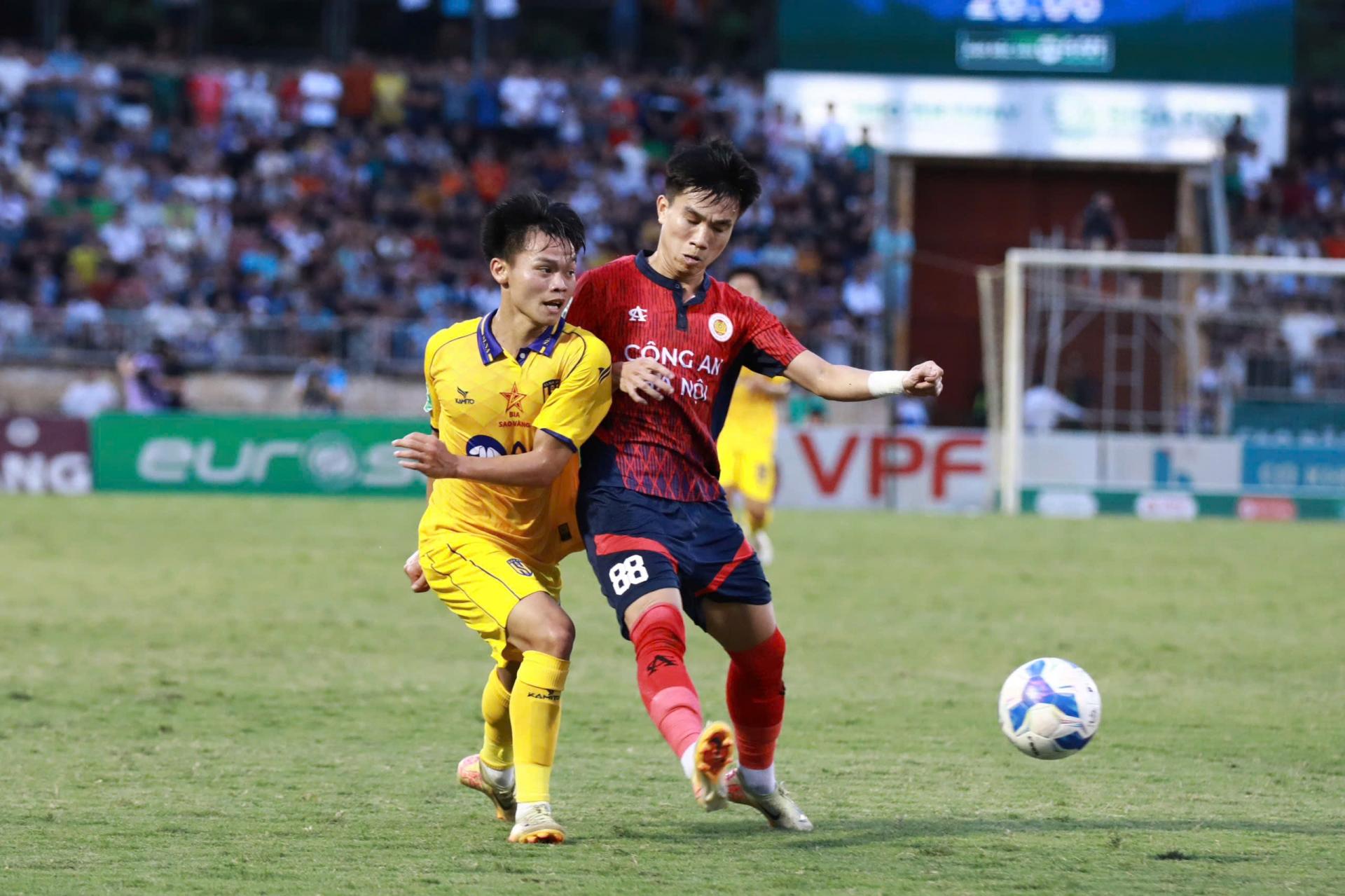Chưa dừng lại ở đó, phút 45, Công an Hà Nội tiếp tục nâng tỷ số lên thành 3-0. Xuất phát từ tình huống phá bóng không dứt khoát của hậu vệ Sông Lam Nghệ An, bóng đến chân của Leonardo Artur, tiền đạo này tung cú sút vào góc gần làm tung lưới Văn Việt.