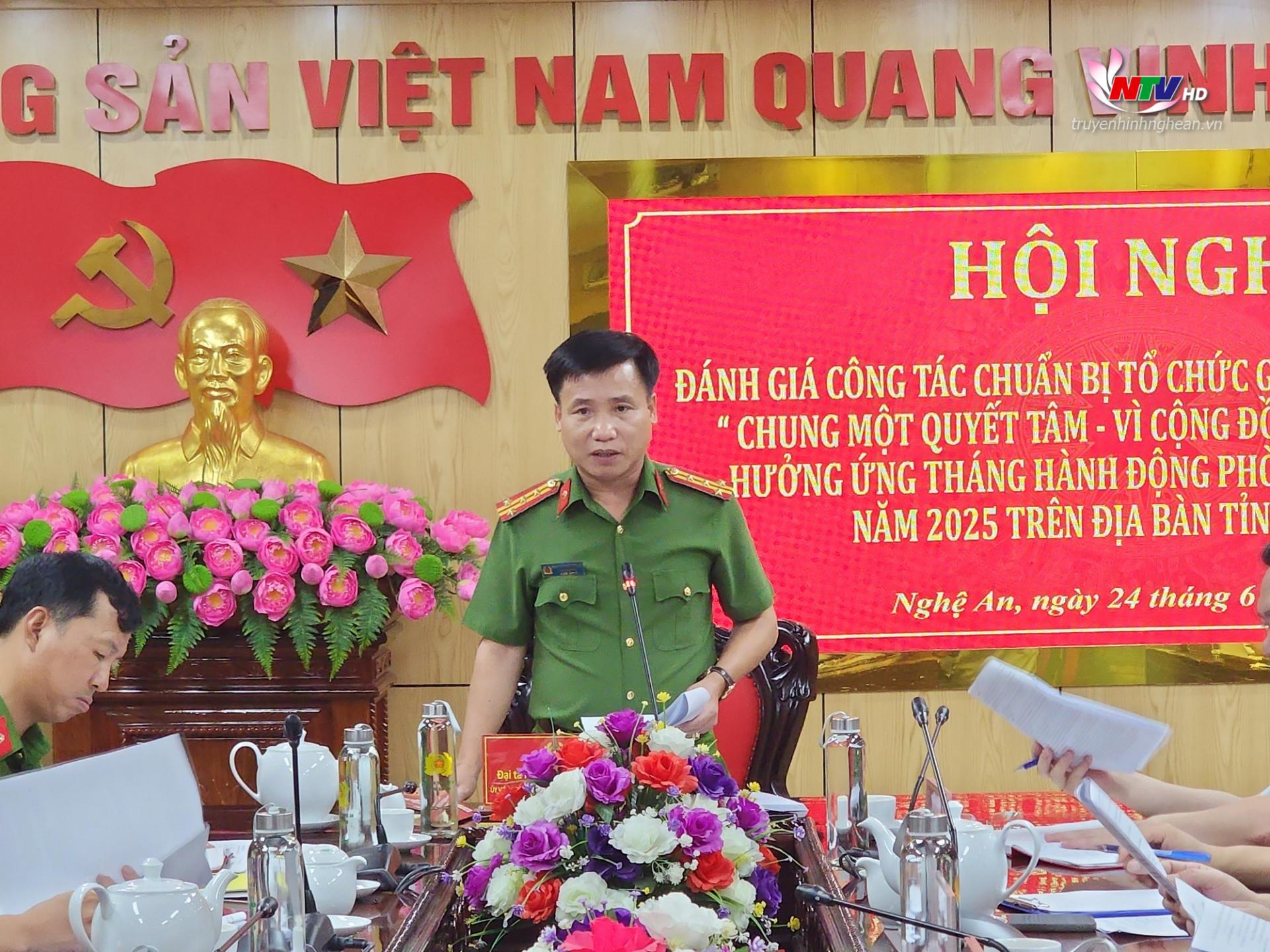 Phát biểu chỉ đạo tại Hội nghị, đồng chí Nguyễn Duy Thanh - Phó Giám đốc Công An tỉnh Nghệ An ghi nhận sự nỗ lực của các thành viên BTC trong thực hiện chủ trương tổ chức giải chạy phong trào “ Chung một quyết tâm - Vì một cộng đồng không ma túy”. Mặc dù thời gian chuẩn bị cho giải khá gấp rút, nhưng với tinh thần quyết tâm hướng tới Tháng hành động phòng, chống ma túy năm 2025 , ngày Toàn dân phòng, chống ma túy và khích lệ phong trào TDTT trên địa bàn Tỉnh Nghệ An, nên các thành viên của BTC đã cơ bản hoàn thành các công việc và nhiệm vụ được giao như xây dựng điều lệ giải, đăng ký số lượng VĐV tham gia, các công tác chuẩn bị về đường chạy, lực lượng hỗ trợ, y tế, tài chính, tuyên truyền …