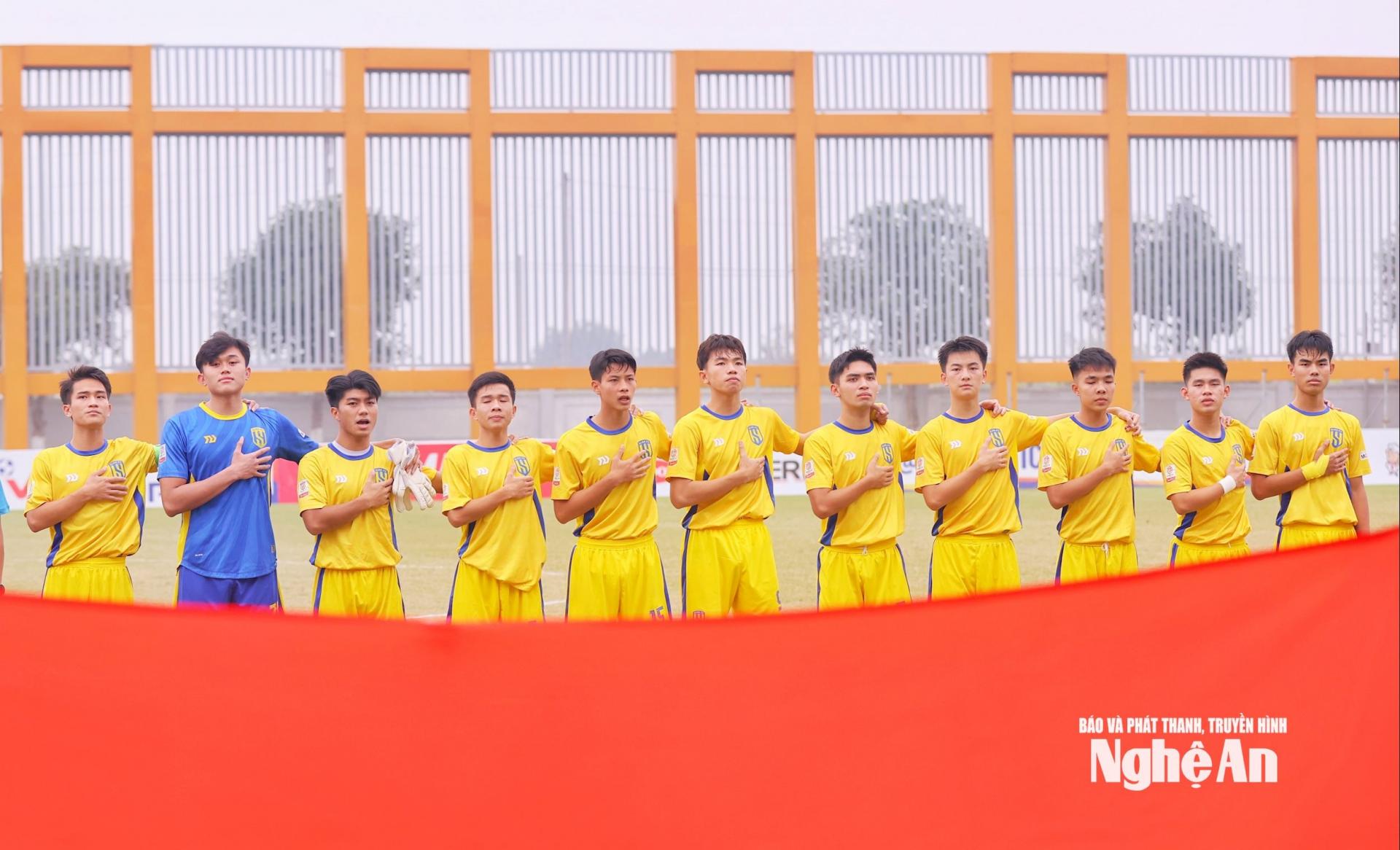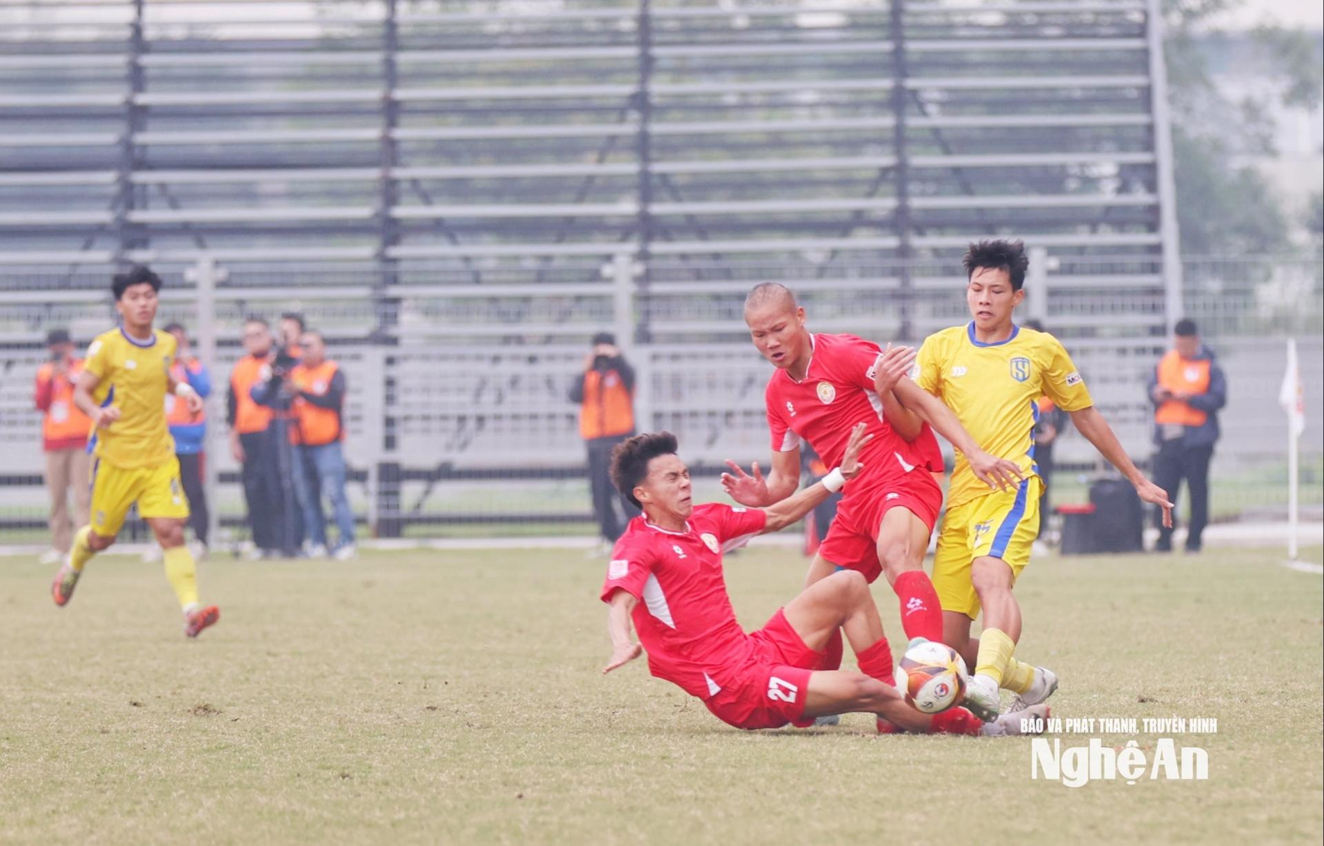 | Nhịp độ cao, sự tập trung và kỷ luật chiến thuật được thể hiện rõ trong từng pha tranh chấp, từng bước di chuyển. U19 SLNA chơi bóng bằng bản lĩnh, không nao núng trước áp lực sân nhà của đối thủ. Ảnh: Đức Anh |