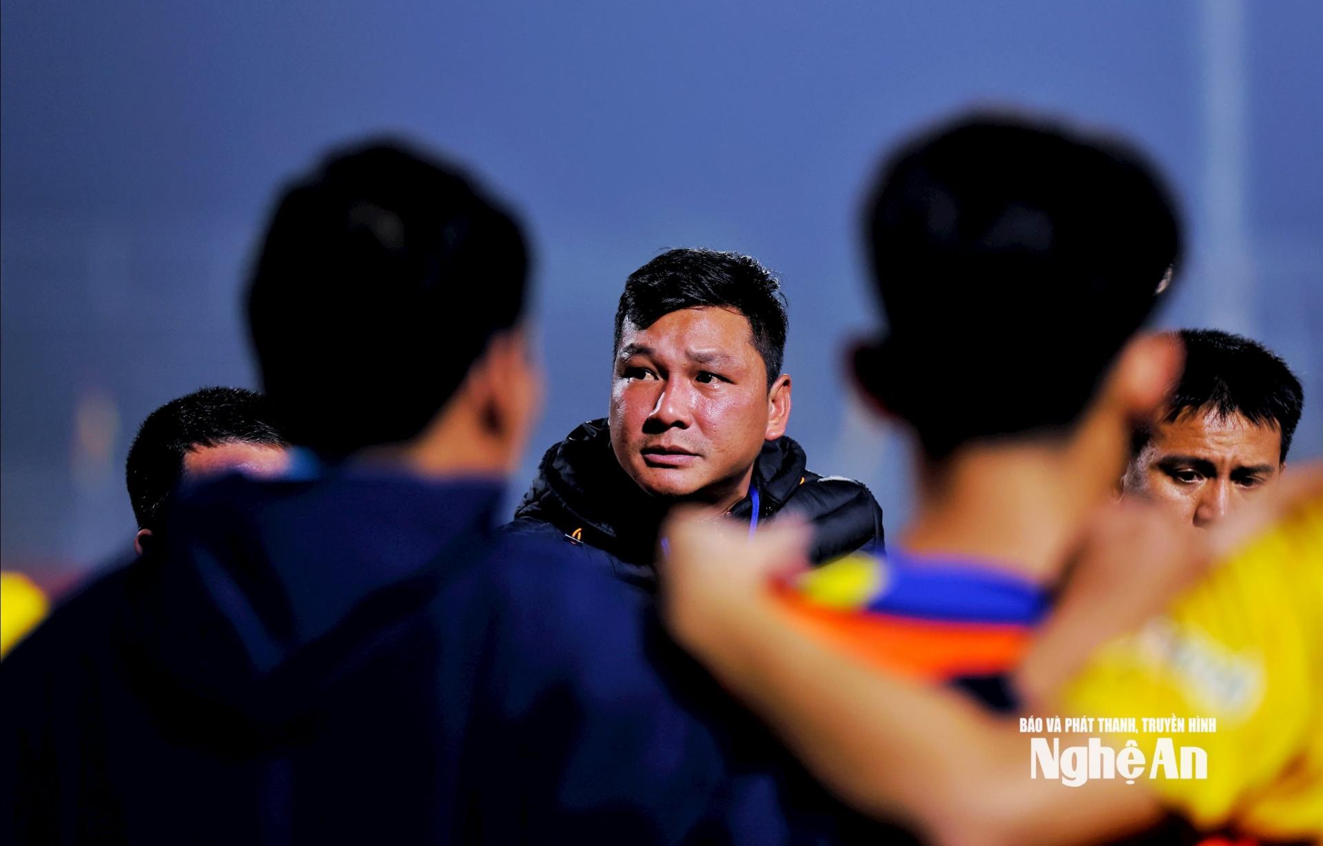 | Khi trận đấu bước sang loạt đá luân lưu đầy may rủi, HLV Nguyễn Hồng Việt đã truyền thêm sự tự tin, tinh thần cho cầu thủ. Ảnh: Đức Anh |