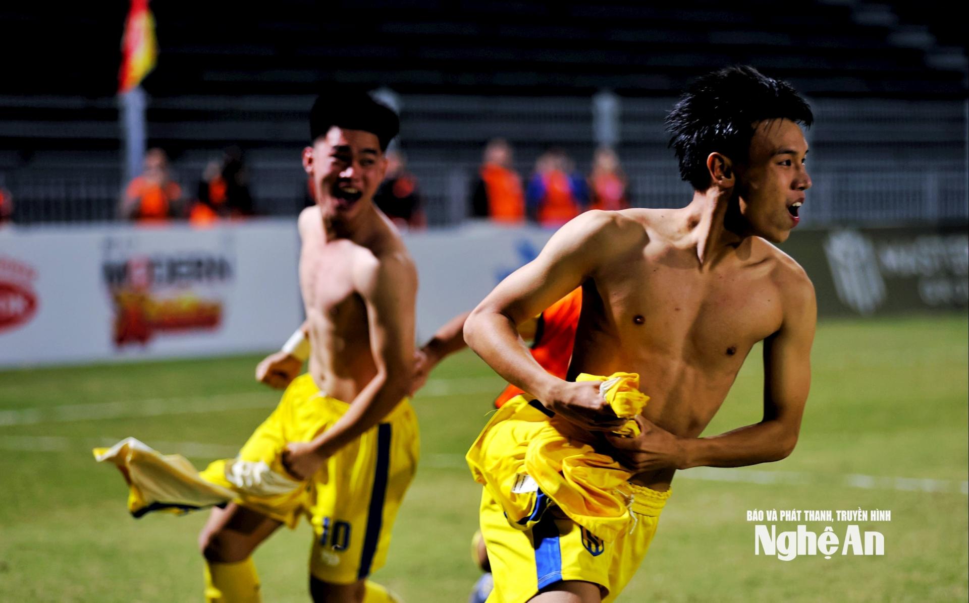 | Các cầu thủ U19 SLNA ăn mừng chiến thắng sau loạt đá luân lưu. Ảnh: Đức Anh |