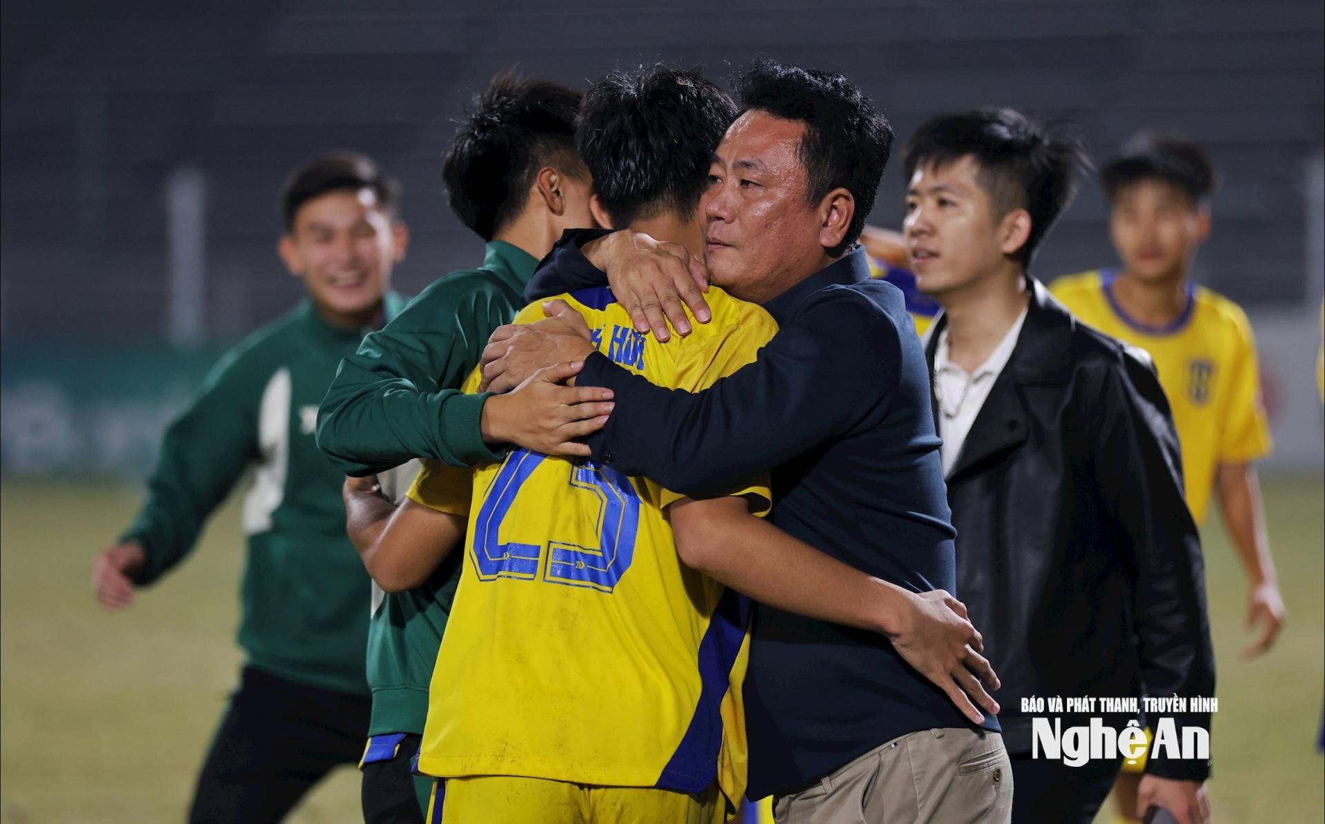 | Giám đốc Trung tâm Đào tạo bóng đá trẻ SLNA - ông Trần Quang Dũng không giấu được cảm xúc sau khi chứng kiến đội nhà giành chức vô địch. Ảnh: Đức Anh |