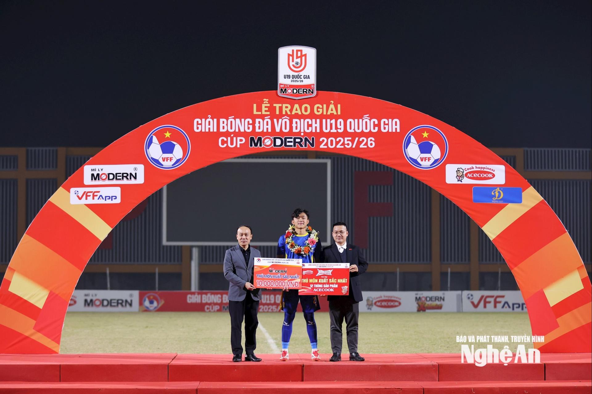 | Cũng tại buổi lễ bế mạc giải, BTC đã trao danh hiệu Thủ môn xuất sắc nhất cho Nguyễn Bảo Ngọc - U19 SLNA. Ảnh: Đức Anh |