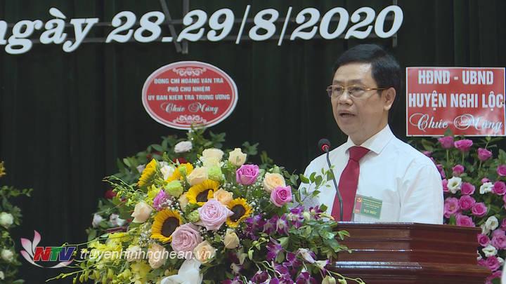 | Lãnh đạo tỉnh tặng hoa chúc mừng Ban Chấp hành Đảng bộ huyện Nghi Lộc, nhiệm kỳ 2020-2025. |