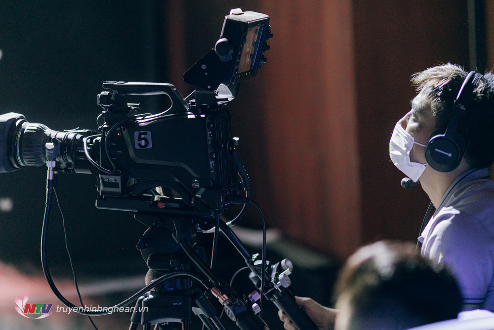 | Đài PTT-TH Nghệ An ghi hình chương trình chúc Tết Xuân Nhâm Dần của Chủ tịch UBND tỉnh Nguyễn Đức Trung tại trường quay Lam Giang. |