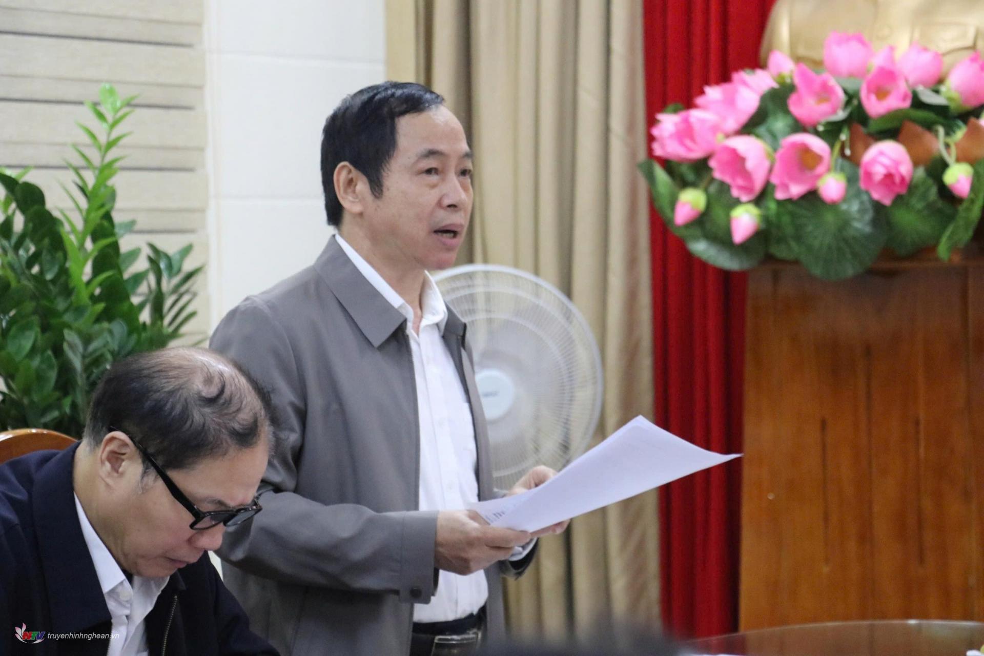 | Đồng chí Lê Đức Cường - Ủy viên Ban Thường vụ, Trưởng Ban Tổ chức Tỉnh ủy phát biểu nghiêm túc tiếp thu ý kiến chỉ đạo của Bí thư Tỉnh ủy, Chủ tịch UBND tỉnh Nguyễn Đức Trung. |