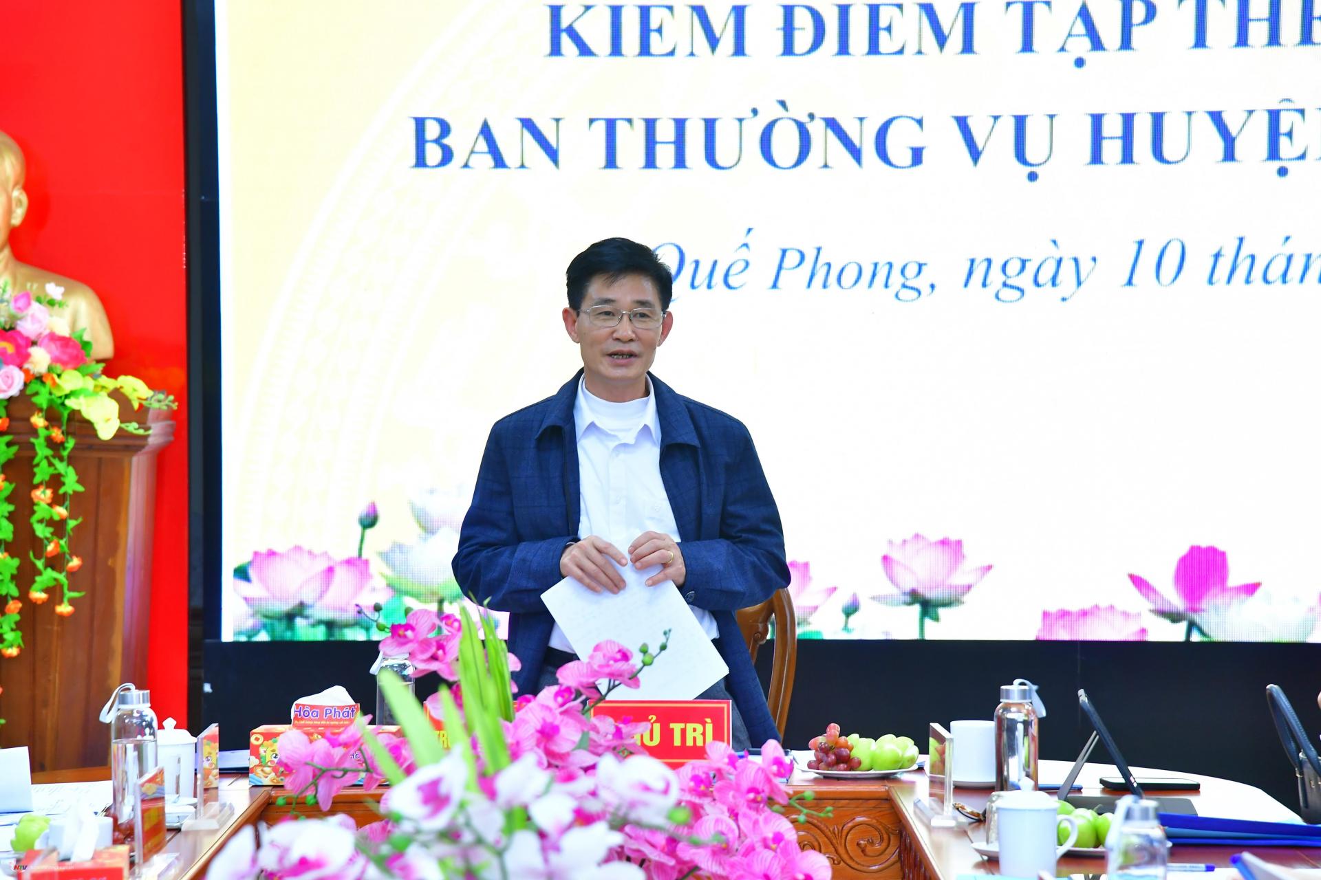 Phát biểu tại hội nghị, đồng chí Đại tá Phan Đại Nghĩa - Ủy viên Ban Thường vụ Tỉnh ủy, Chỉ huy trưởng Bộ Chỉ huy Quân sự tỉnh đánh giá cao tinh thần kiểm điểm thẳng thắn, cầu thị và trách nhiệm cao của Ban Thường vụ Huyện ủy Quế Phong. Theo đó, Ban Thường vụ Huyện ủy đã bám sát chức năng, nhiệm vụ, quy chế làm việc để lãnh đạo đạt kết quả tốt nhiệm vụ được giao. Nội bộ đoàn kết, thống nhất, nhân dân đồng thuận. Xử lý kịp thời những phát sinh từ cơ sở, giữ vững ổn định địa bàn.