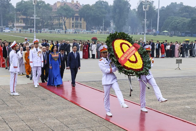 Trước đó, Chủ tịch nước Lương Cường và Phu nhân, đại diện lãnh đạo các ban, bộ, ngành Trung ương, TP. Hà Nội cùng Đoàn kiều bào đã dâng hương tại Điện Kính Thiên trong Di tích Hoàng Thành Thăng Long.