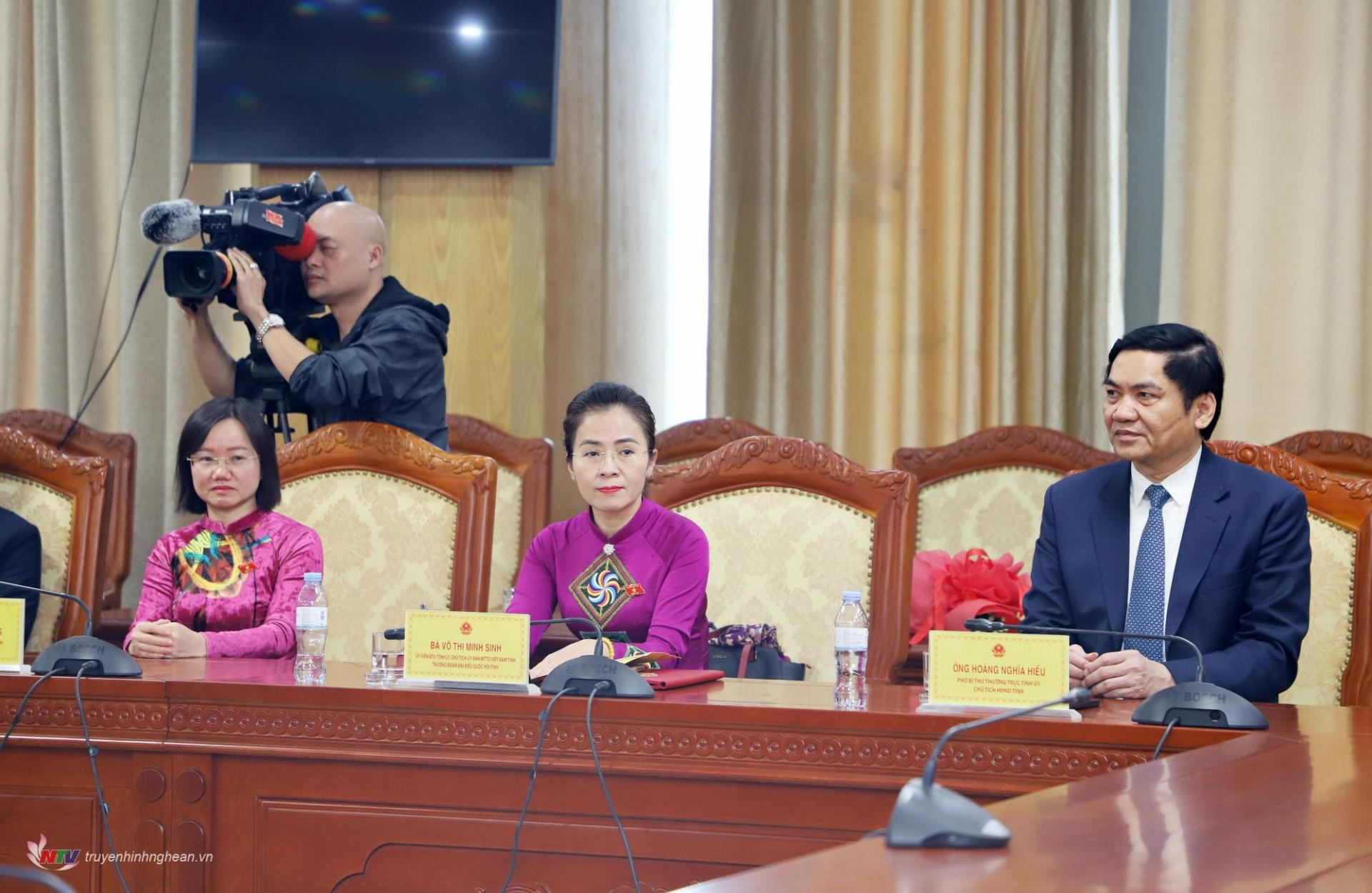 Bí thư Tỉnh ủy Nguyễn Đức Trung mong Trưởng Đoàn ĐBQH tỉnh Võ Thị Minh Sinh cùng các đại biểu Quốc hội khóa XV tỉnh Nghệ An tiếp tục quan tâm, hỗ trợ tỉnh giải quyết các công việc, giúp tỉnh thực hiện được các mục tiêu phát triển trong thời gian tới.