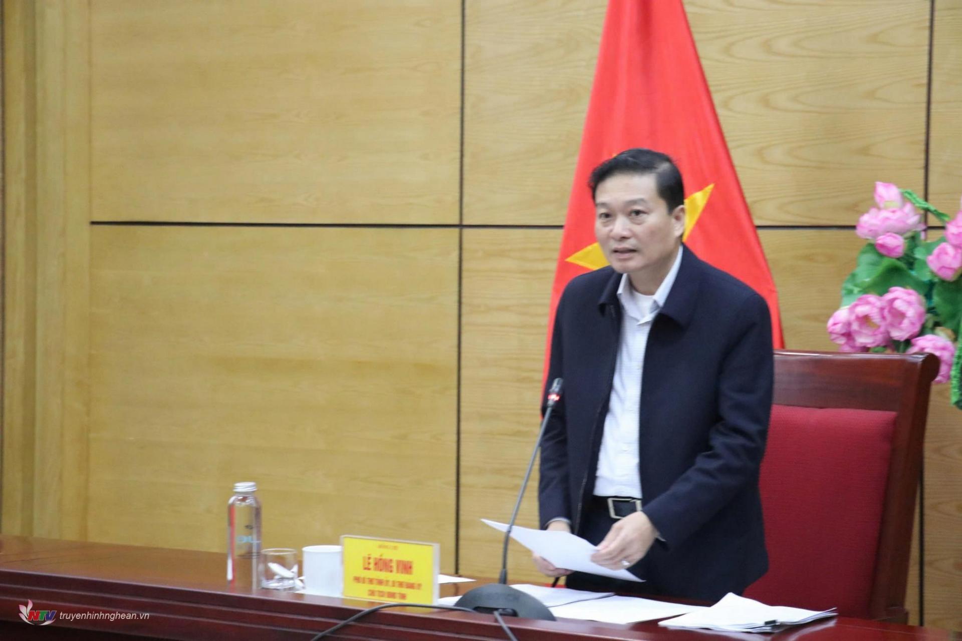 | Đồng chí Lê Hồng Vinh - Phó Bí thư Tỉnh ủy, Chủ tịch UBND tỉnh, Bí thư Đảng ủy UBND tỉnh phát biểu tại hội nghị. |