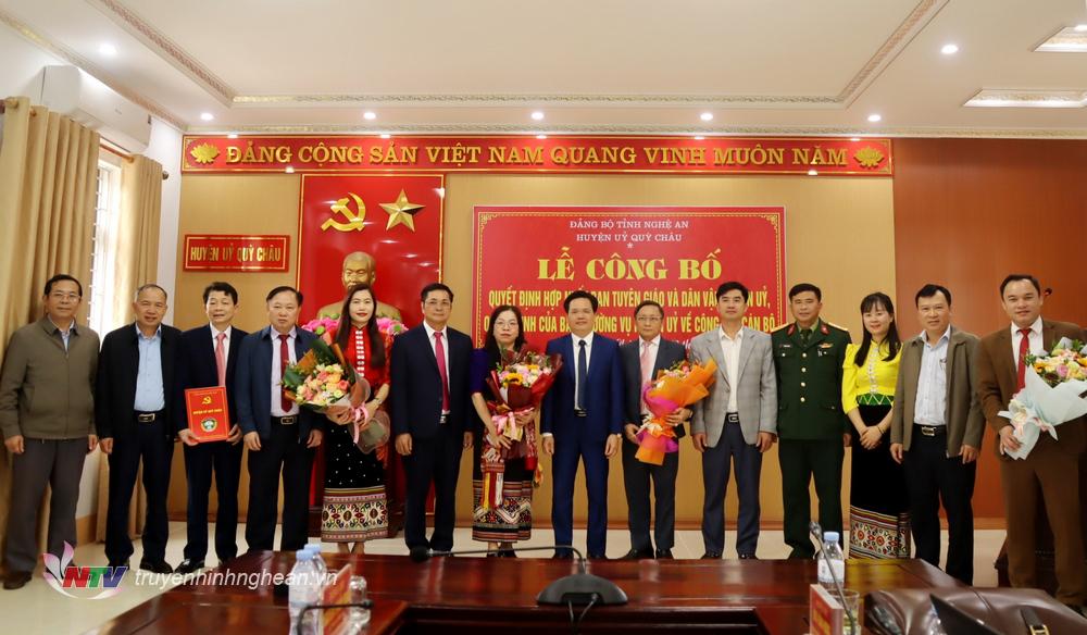 * Hợp nhất hai ban Ban Tuyên giáo và Ban Dân vận Huyện ủy Quỳ Châu thành Ban Tuyên giáo và Dân vận Huyện ủy Quỳ Châu, đồng chí Lữ Thị Thủy - Trưởng Ban Tuyên giáo, Giám đốc Trung tâm chính trị huyện được chỉ định giữ chức vụ Trưởng Ban Tuyên giáo và Dân vận Huyện ủy. Ban Thường vụ Huyện ủy cũng công bố và trao Quyết định chỉ định các đồng chí gồm: đồng chí Lô Thanh Lý - Phó Trưởng Ban Dân vận; đồng chí Sầm Trung Kiên - Phó Trưởng Ban Dân vận; đồng chí Lang Văn Hồng - Phó Trưởng Ban Tuyên giáo cùng giữ chức vụ Phó trưởng Ban Tuyên giáo và Dân vận Huyện ủy.