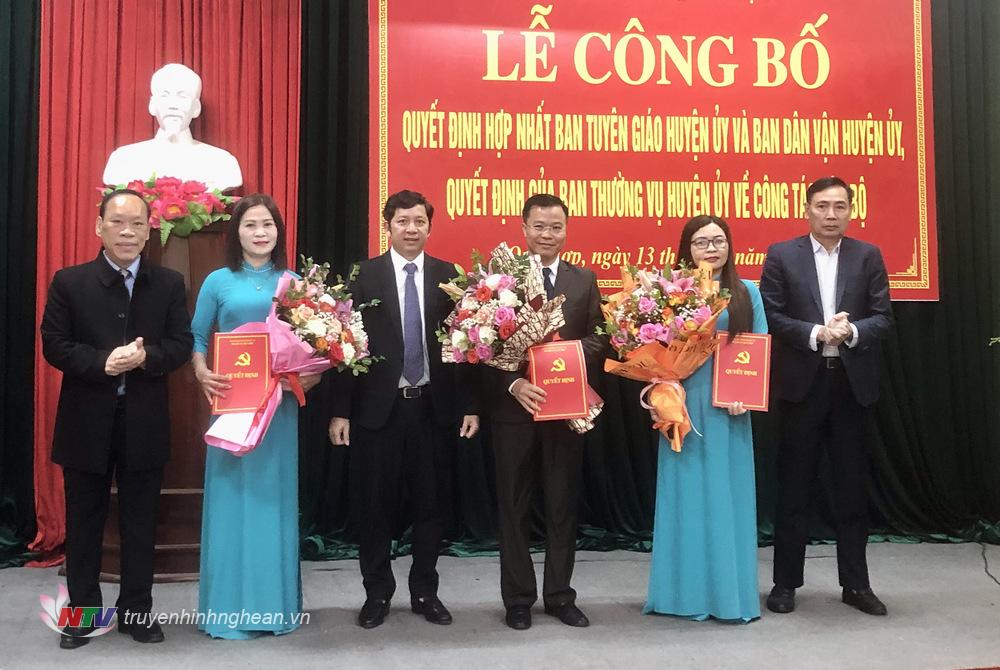 Đồng chí Lê Cảnh Đại, Trưởng Ban Tuyên giáo Huyện uỷ, Giám đốc Trung tâm Chính trị huyện được phân công, bổ nhiệm giữ chức Trưởng ban Tuyên giáo và Dân vận Huyện ủy. Các đồng chí Nguyễn Thị Hoài Vân, Phó Trưởng Ban Thường trực Ban Tuyên giáo Huyện uỷ, Trương Quang Thắng, Phó Trưởng Ban Dân vận Huyện uỷ được phân công, bổ nhiệm giữ chức Phó Trưởng Ban Tuyên giáo và Dân vận Huyện ủy Nghĩa Đàn.