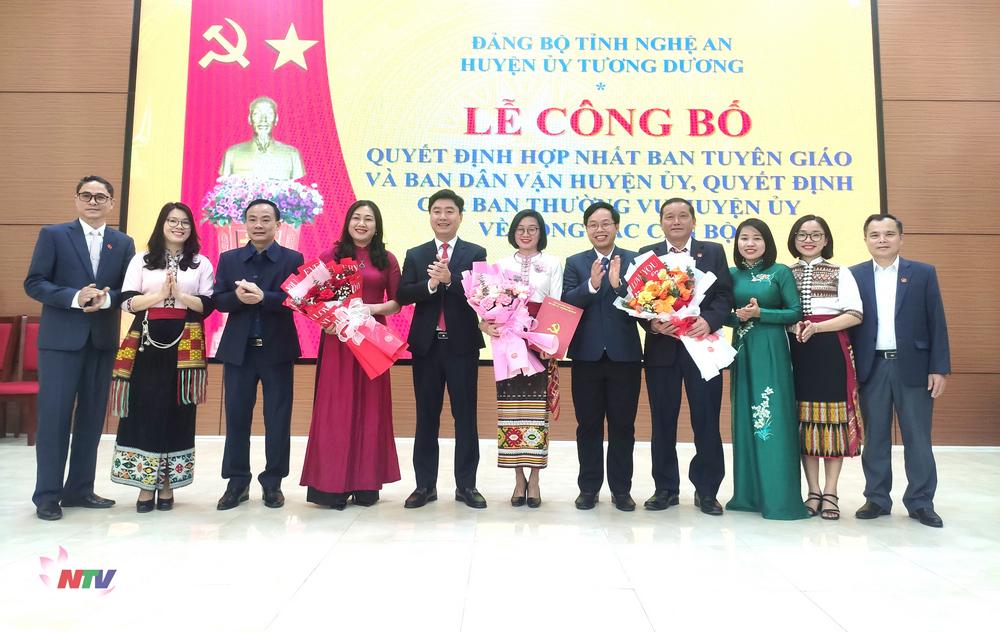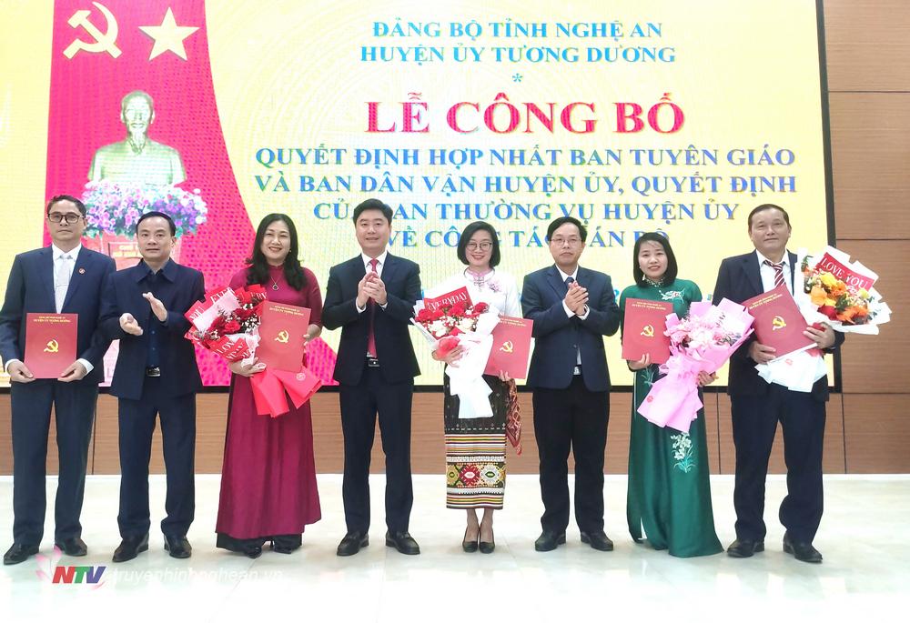 * Theo quyết định của Ban Chấp hành Đảng bộ Huyện Tương Dương, Ban Tuyên giáo Huyện ủy và Ban Dân vận Huyện ủy hợp nhất kể từ ngày 12/2/2025 với tên gọi là Ban Tuyên giáo và Dân vận Huyện ủy. Hội nghị đã công bố quyết định bổ nhiệm đồng chí Vi Thị Bích Thủy, Ủy viên BTV Huyện ủy, giữ chức Trưởng Ban Tuyên giáo và Dân vận Huyện ủy kiêm Giám đốc Trung tâm Chính trị huyện Tương Dương; Ban Tuyên giáo và Dân vận Tương Dương có 4 Phó Trưởng Ban.