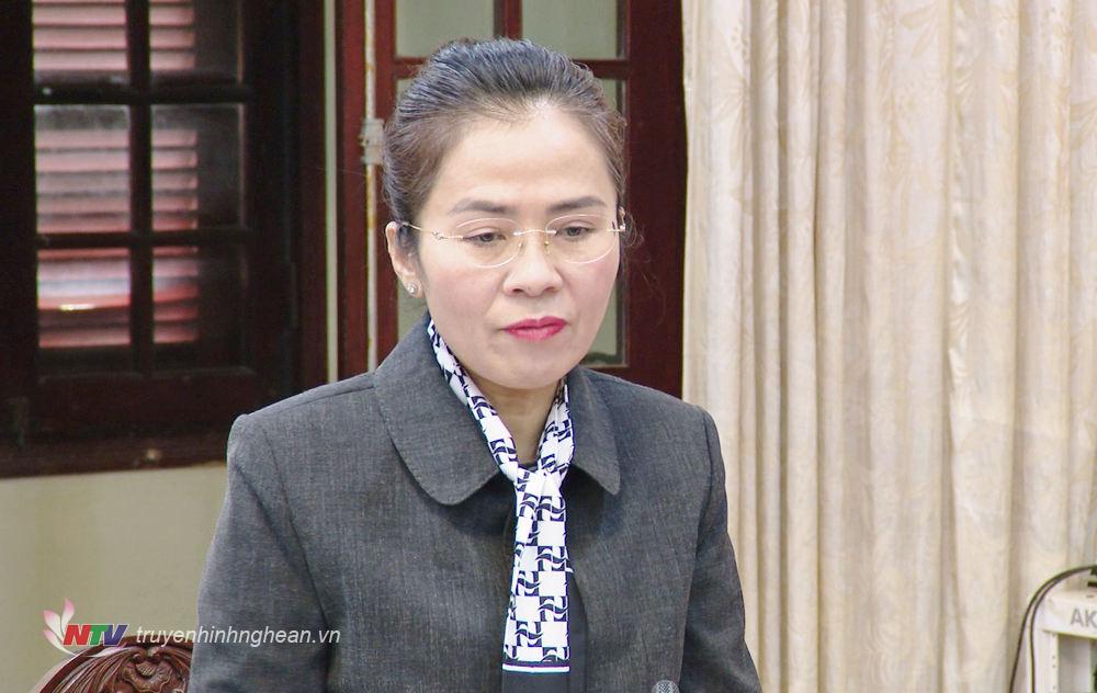 | Chủ tịch UBMTTQ tỉnh Võ Thị Minh Sinh phát biểu tại phiên họp. |