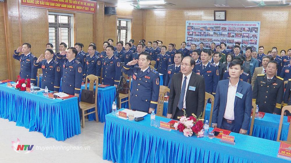 | Các đại biểu thực hiện nghi lễ chào cờ. |