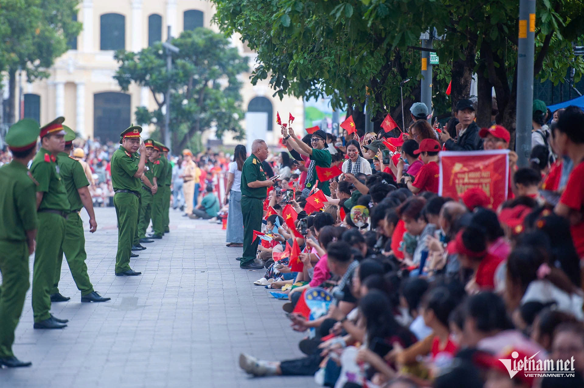 | Người dân đổ về hai bên đường Lê Lợi, an ninh nơi đây cũng được thắt chặt. |