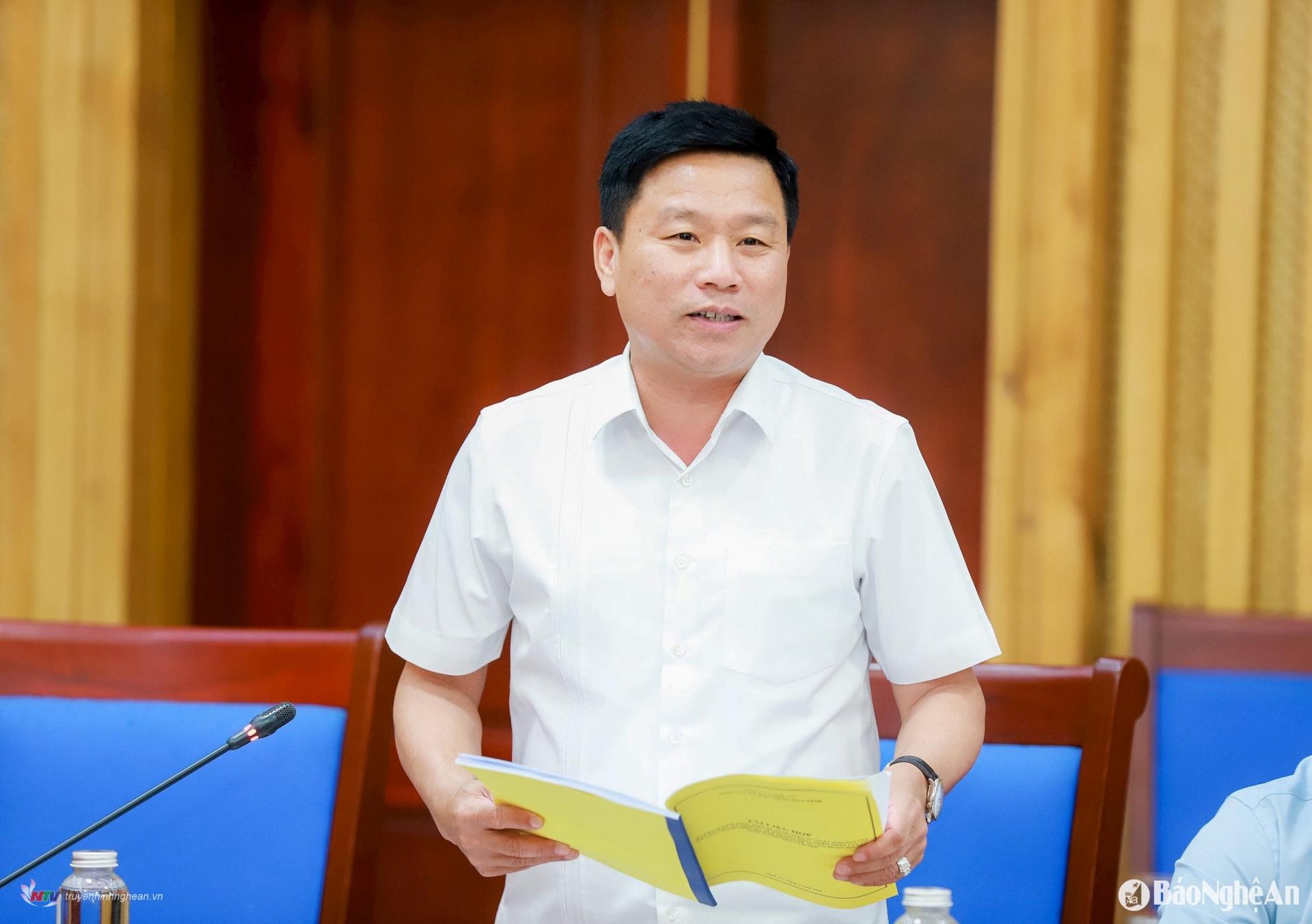 | Đồng chí Hoàng Phú Hiền - Phó Chủ tịch UBND tỉnh, Ủy viên Ban Chấp hành Đảng bộ UBND tỉnh phát biểu tại buổi làm việc. Ảnh BNA |