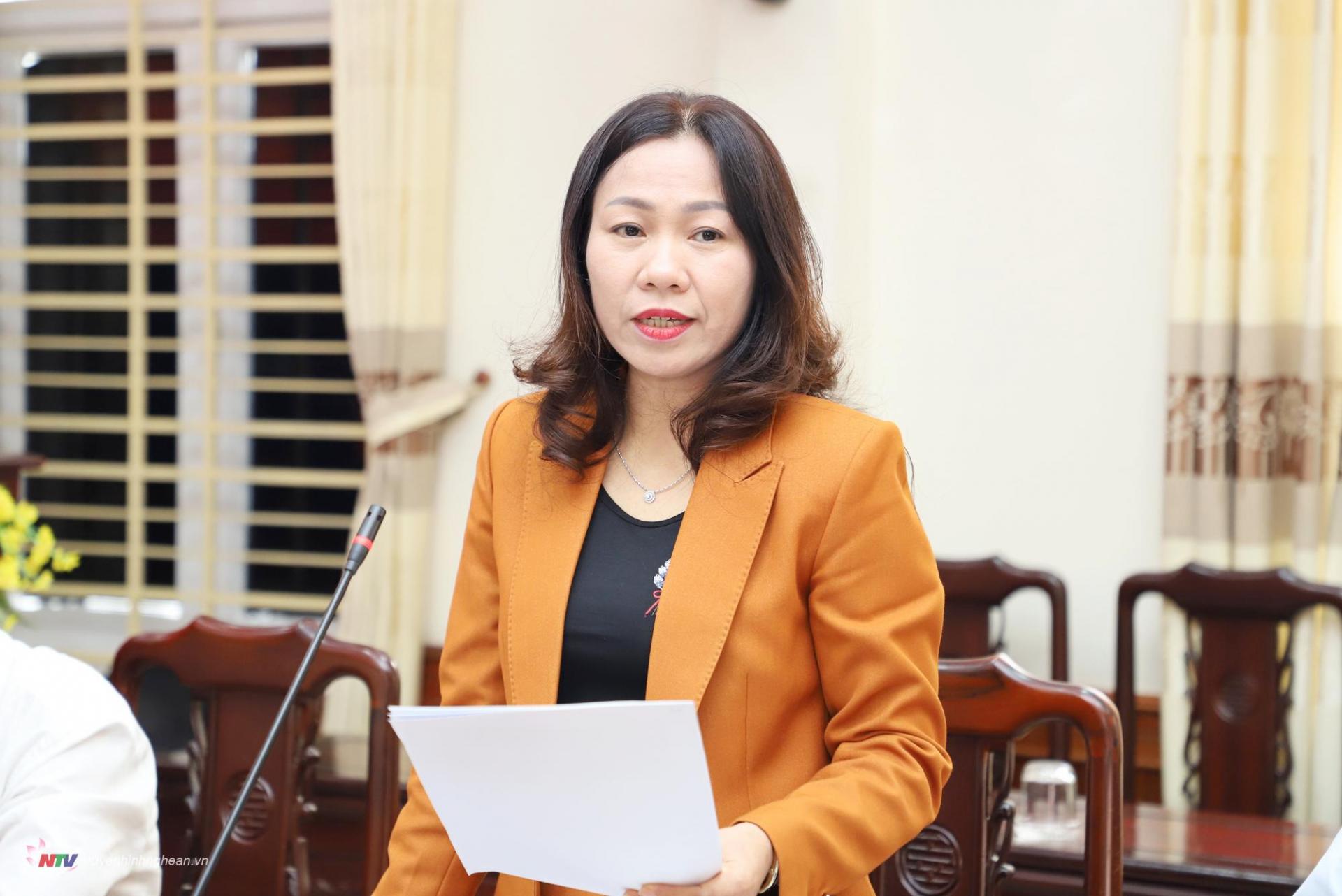 | Đồng chí Ngô Thị Hường - Trưởng ban Tổ chức Thành uỷ Vinh phát biểu tại buổi sinh hoạt. |