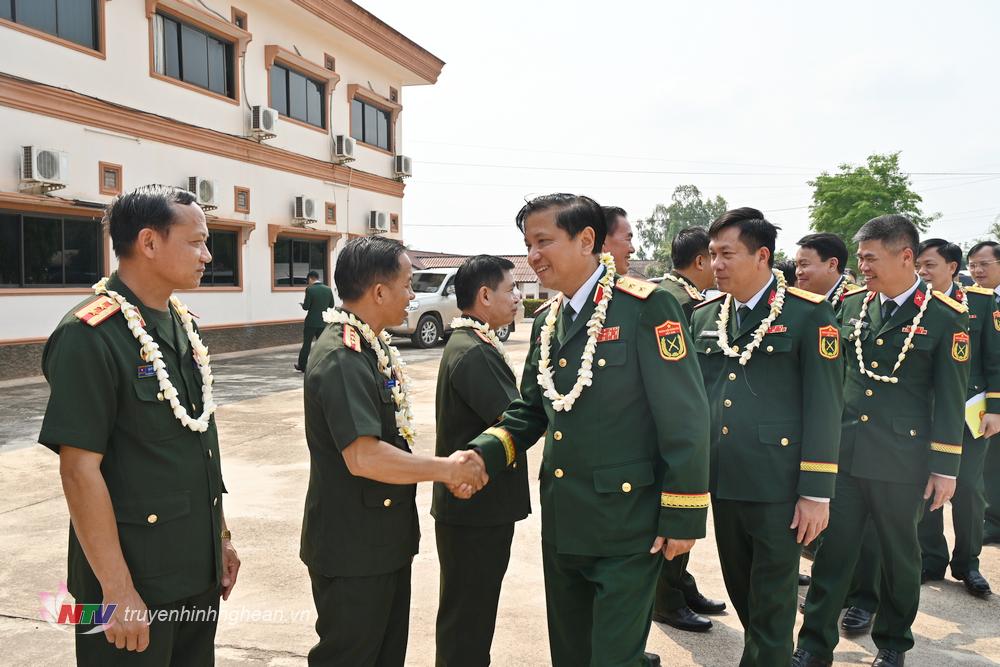 | nh 1: Lãnh đạo Bộ CHQS tỉnh Viêng Chăn, Lào đón đoàn công tác Bộ Tư lệnh Quân khu 4 đến thăm, chúc Tết Bun pi may. |