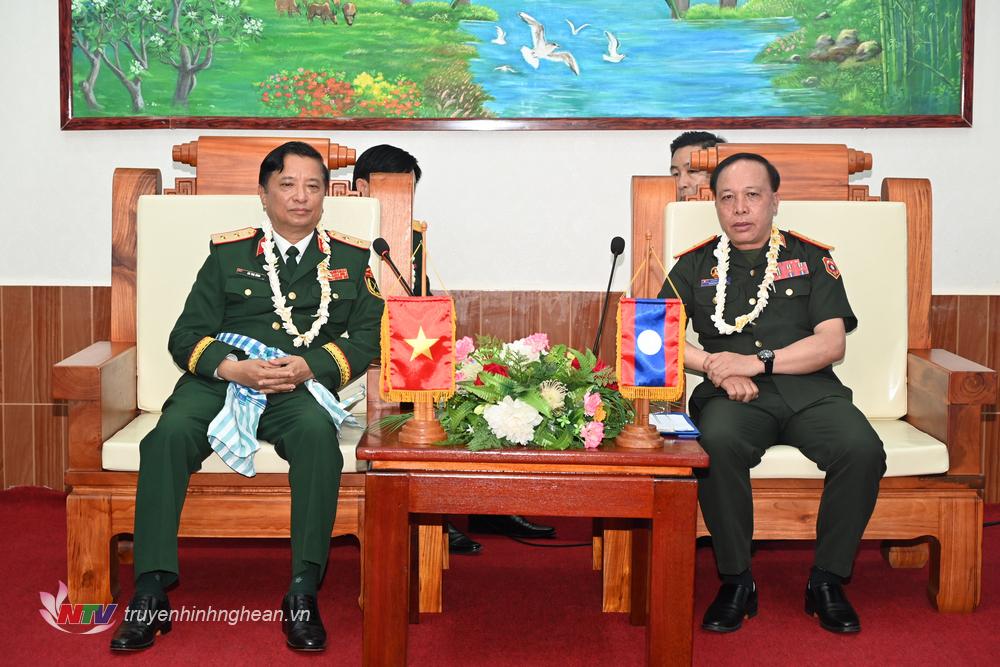 Tiếp, làm việc với đoàn có Thiếu tướng Vông Chăn – Phăn Chăn Thạ Mạn, Chính ủy Sư đoàn 1 và Thiếu tướng Bun Thoong - Bút Thạ Vông, Chính ủy Bộ CHQS tỉnh Viêng Chăn.
