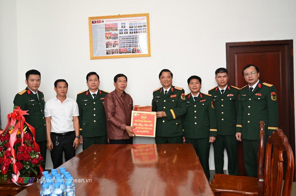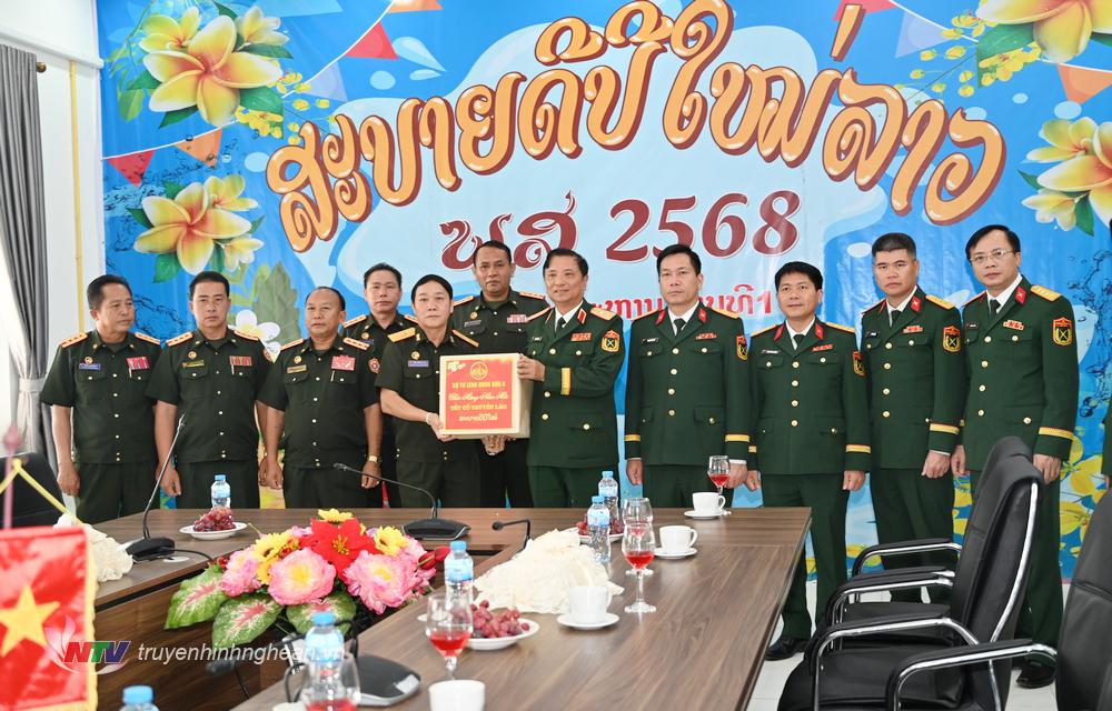 | Đoàn công tác Bộ Tư lệnh Quân khu 4 chúc Tết Bun pi may tại Sư đoàn 1, QĐND Lào. |