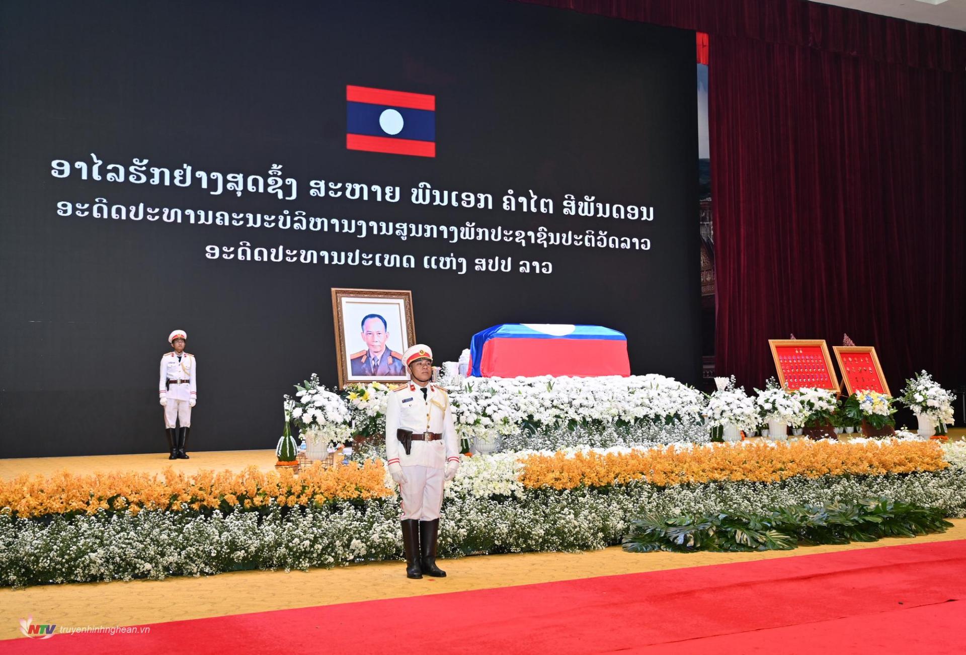 | Lễ viếng Đại tướng Khamtay Siphandone được tổ chức trọng thể tại Trung tâm Hội nghị Quốc gia Lào. |