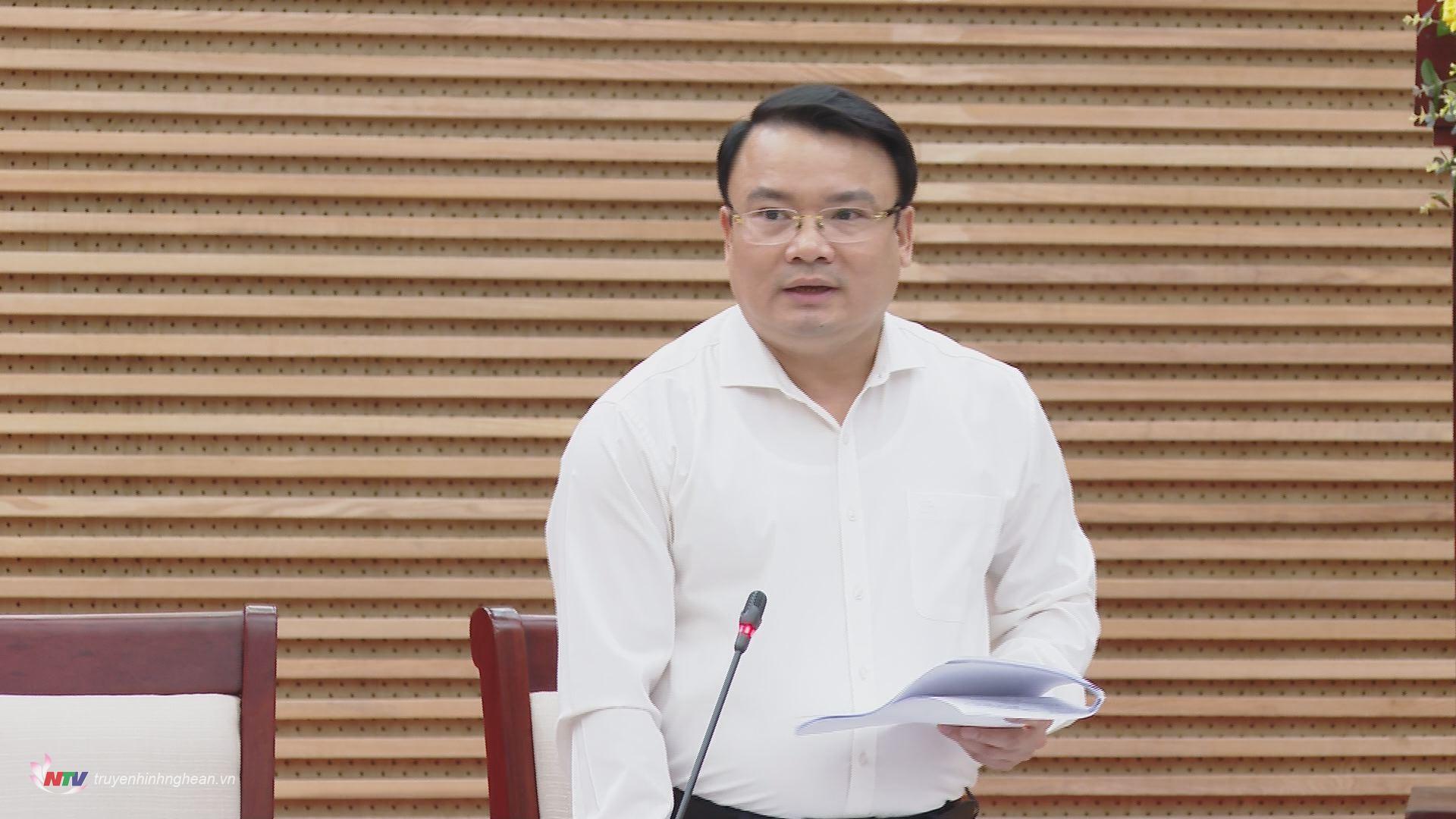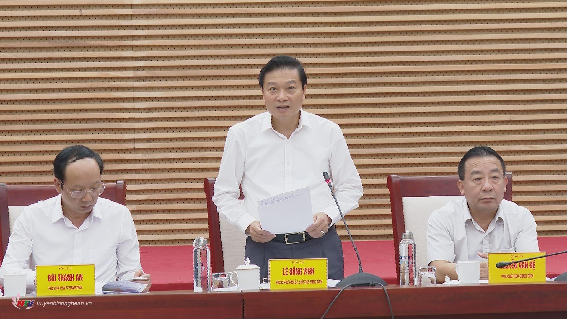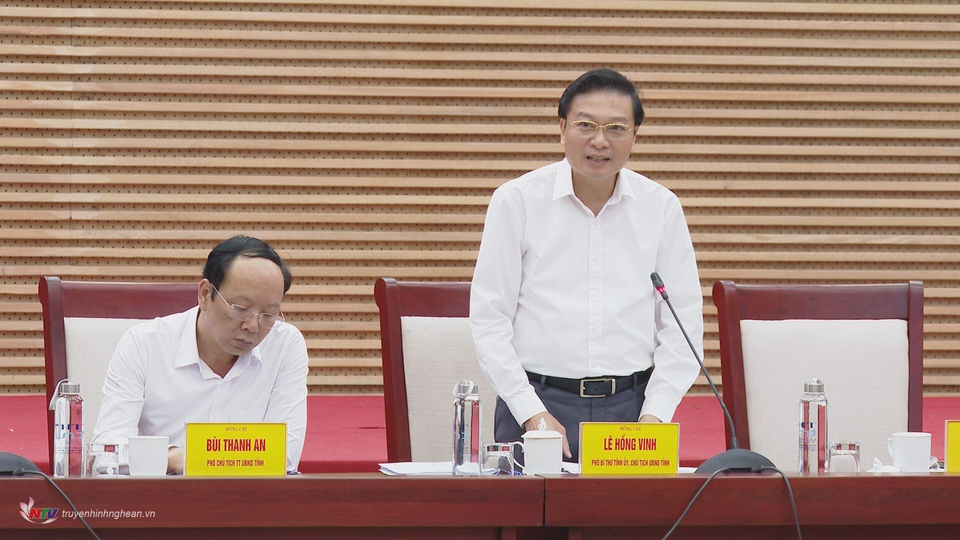 | Đồng chí Lê Hồng Vinh - Phó Bí thư Tỉnh ủy, Chủ tịch UBND tỉnh Nghệ An phát biểu tại buổi làm việc. |