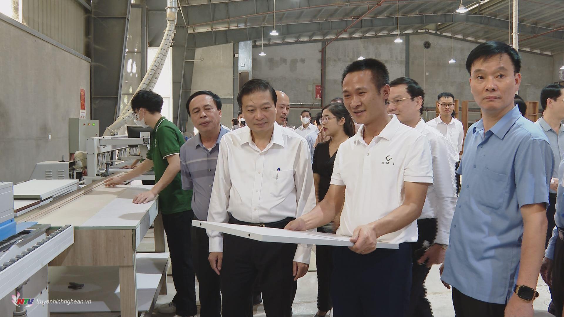 Tại đây, đoàn công tác của UBND tỉnh đã trực tiếp tham quan cơ sở sản xuất trên 5.000m2 của Công ty CP Thiết kế Kiến Mộc. Các sản phẩm của doanh nghiệp chủ yếu là đồ gỗ nội thất, sản phẩm gỗ dùng trong ngành xây dựng... phục vụ nhu cầu trong nước. Chủ tịch UBND tỉnh Lê Hồng Vinh chúc mừng những thành công bước đầu của Kiến Mộc sau 10 năm khởi nghiệp. Đồng thời đề nghị các sở, ngành liên quan và KCN VSIP quan tâm giúp đỡ, hỗ trợ để doanh nghiệp phát triển, khai thác tài nguyên rừng bền vững; nâng cao chuỗi giá trị rừng trồng và thu nhập của người trồng rừng. Tạo điều kiện để doanh nghiệp tham gia sâu hơn các hoạt động xúc tiến đầu tư, thương mại.