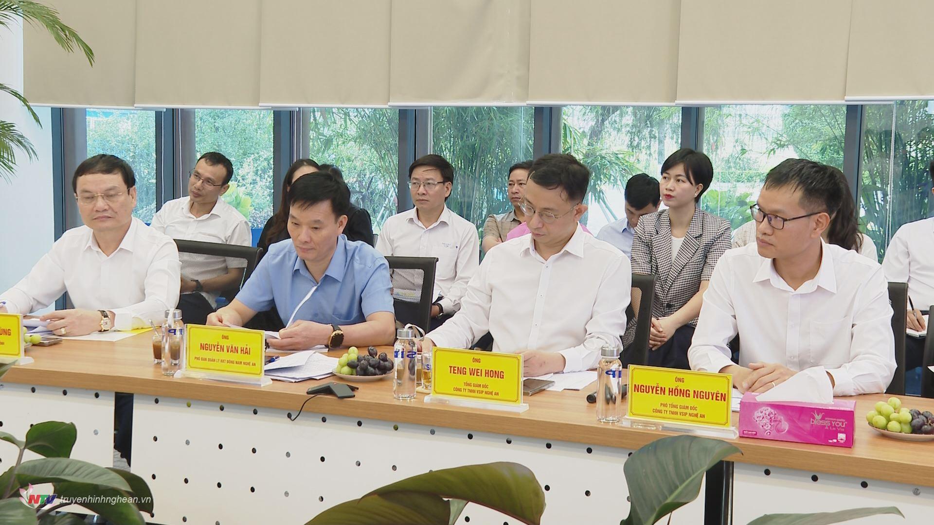 Sau khi thị sát thực địa, Chủ tịch UBND tỉnh và đoàn công tác có cuộc làm việc với lãnh đạo Công ty TNHH VSIP Nghệ An, cùng đại diện một số nhà đầu tư thứ cấp đang hoạt động tại đây.
