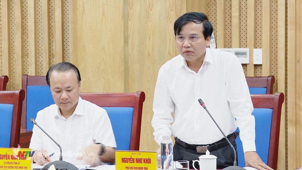 | Phó Chủ tịch HĐND tỉnh Nguyễn Như Khôi phát biểu tại buổi làm việc. |