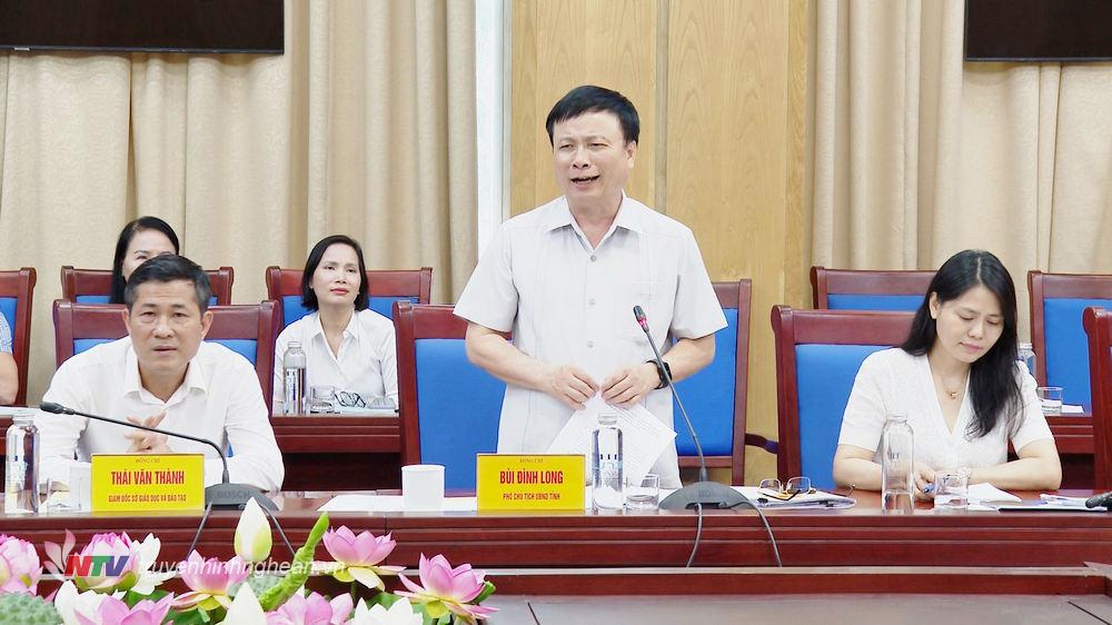 | Phó Chủ tịch UBND tỉnh Bùi Đình Long phát biểu tại buổi làm việc. |