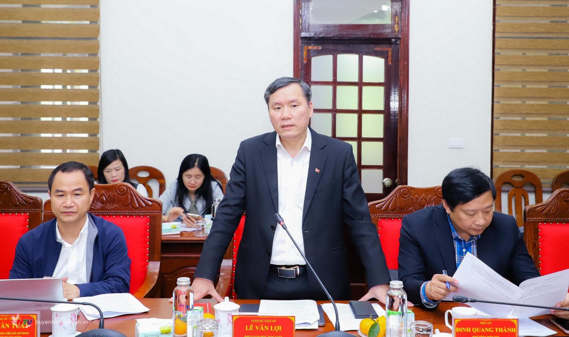 Phát biểu kết luận buổi làm việc, Giáo sư, Tiến sĩ Lê Văn Lợi, Phó Giám đốc Học viện Chính trị Quốc gia Hồ Chí Minh đánh giá cao những đổi mới, sáng tạo và những kết quả nổi bật, toàn diện tỉnh Nghệ An đã đạt được trên tất cả các lĩnh vực trong nghiên cứu, vận dụng và phát triển sáng tạo tư tưởng Hồ Chí Minh trong công cuộc xây dựng và bảo vệ Tổ quốc trên địa bàn.