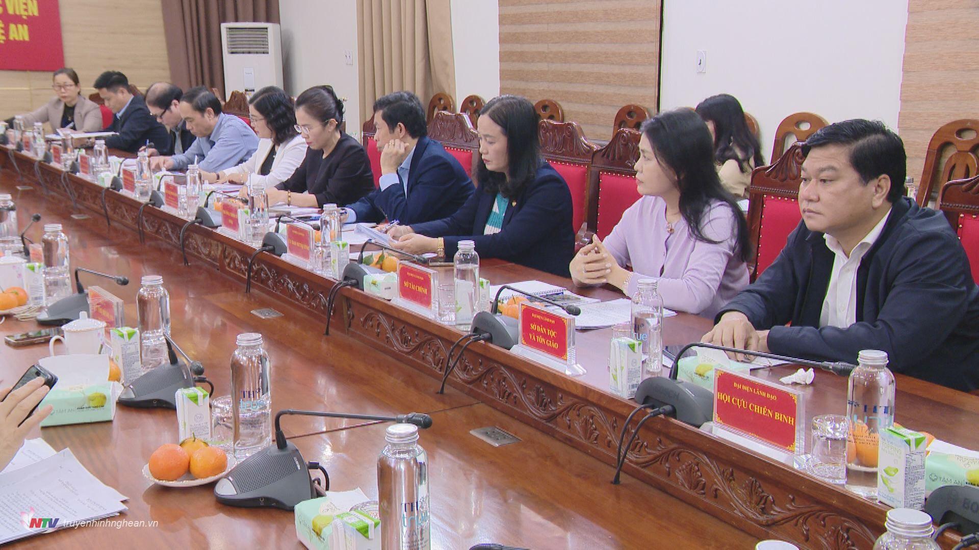 Những vấn đề được đoàn công tác quan tâm cũng đã được lãnh đạo các sở, ban, ngành và Phó Bí thư Tỉnh ủy Võ Thị Minh Sinh trao đổi, làm rõ gồm: Tổ chức thực hiện kế hoạch vận dụng, phát triển tư tưởng Hồ Chí Minh trong công tác phát triển kinh tế tư nhân; trong thu hút, đãi ngộ, trọng dụng nhân tài; Vai trò của MTTQ và các tổ chức thành viên trong giám sát phản biện xã hội; Phát huy truyền thống văn hóa, đặc biệt là không gian văn hóa Hồ Chí Minh trong phát triển kinh tế xã hội của tỉnh; Sự phối hợp giữa các lực lượng trong giáo dục lối sống cho thanh niên trong định hình cho thanh niên có bản sắc văn hóa xứ Nghệ; Kinh nghiệm, cách làm trong phát triển đảng viên tại vùng đặc thù, trong doanh nghiệp tư nhân và FDI, trong học sinh và sinh viên.