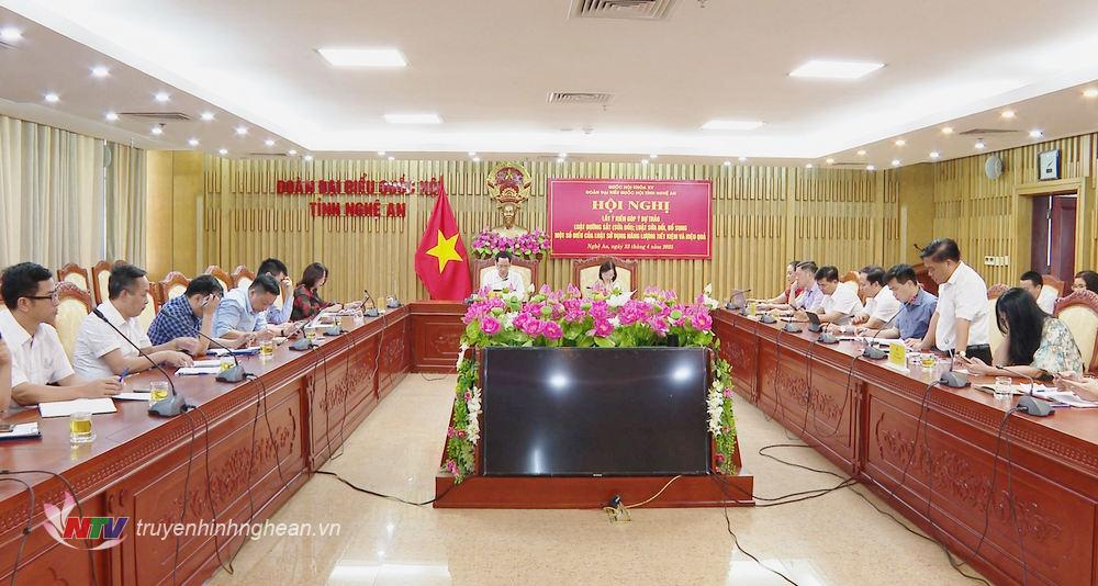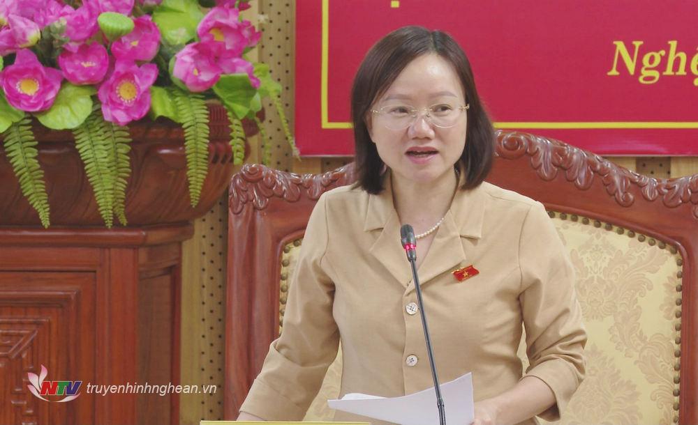 | Phó Trưởng Đoàn đại biểu Quốc hội chuyên trách tỉnh Nghệ An Thái Thị An Chung phát biểu kết luận hội nghị. |