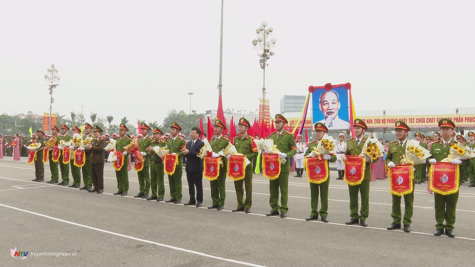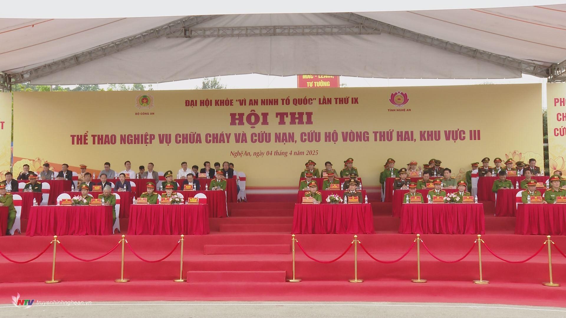 Tham dự có Thiếu tướng Nguyễn Đình Hoàn – Phó Cục trưởng Cục Cảnh sát PCCC và CNCH (Bộ Công an); đại diện lãnh đạo Công an các tỉnh tham gia hội thi. Về phía tỉnh Nghệ An có các đồng chí: Thiếu tướng Bùi Quang Thanh – Ủy viên Ban Thường vụ Tỉnh ủy, Giám đốc Công an tỉnh; Bùi Đình Long – Phó Chủ tịch UBND tỉnh.