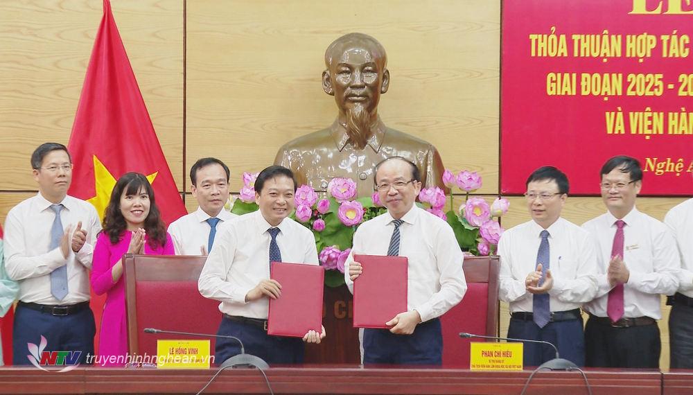 Trên cơ sở thống nhất các nội dung, Chủ tịch UBND tỉnh Lê Hồng Vinh và Chủ tịch Viện Hàn lâm Khoa học xã hội Việt Nam Phan Chí Hiếu đã ký kết Thoả thuận hợp tác nghiên cứu khoa học xã hội và nhân văn giai đoạn 2025 - 2030.