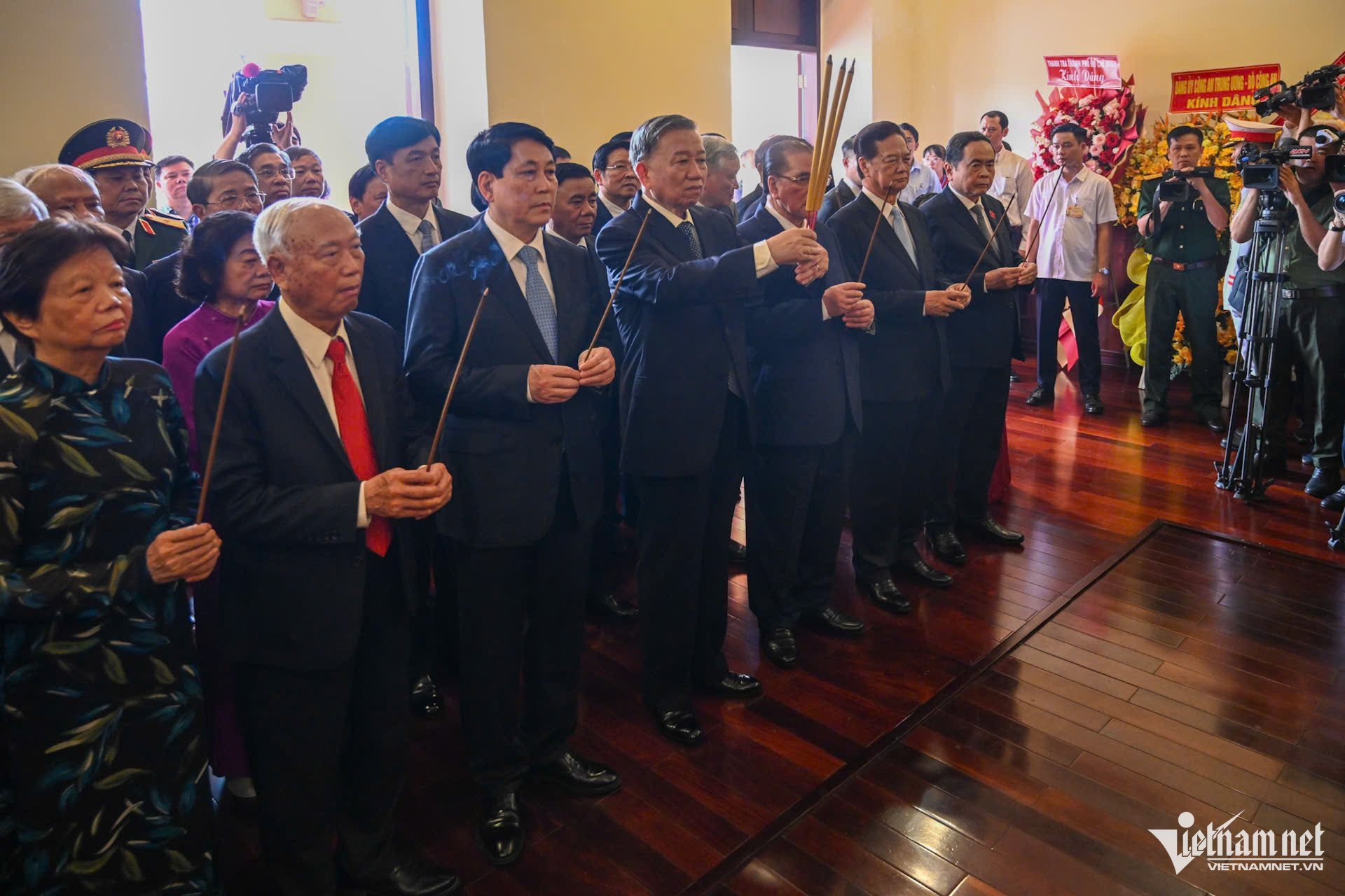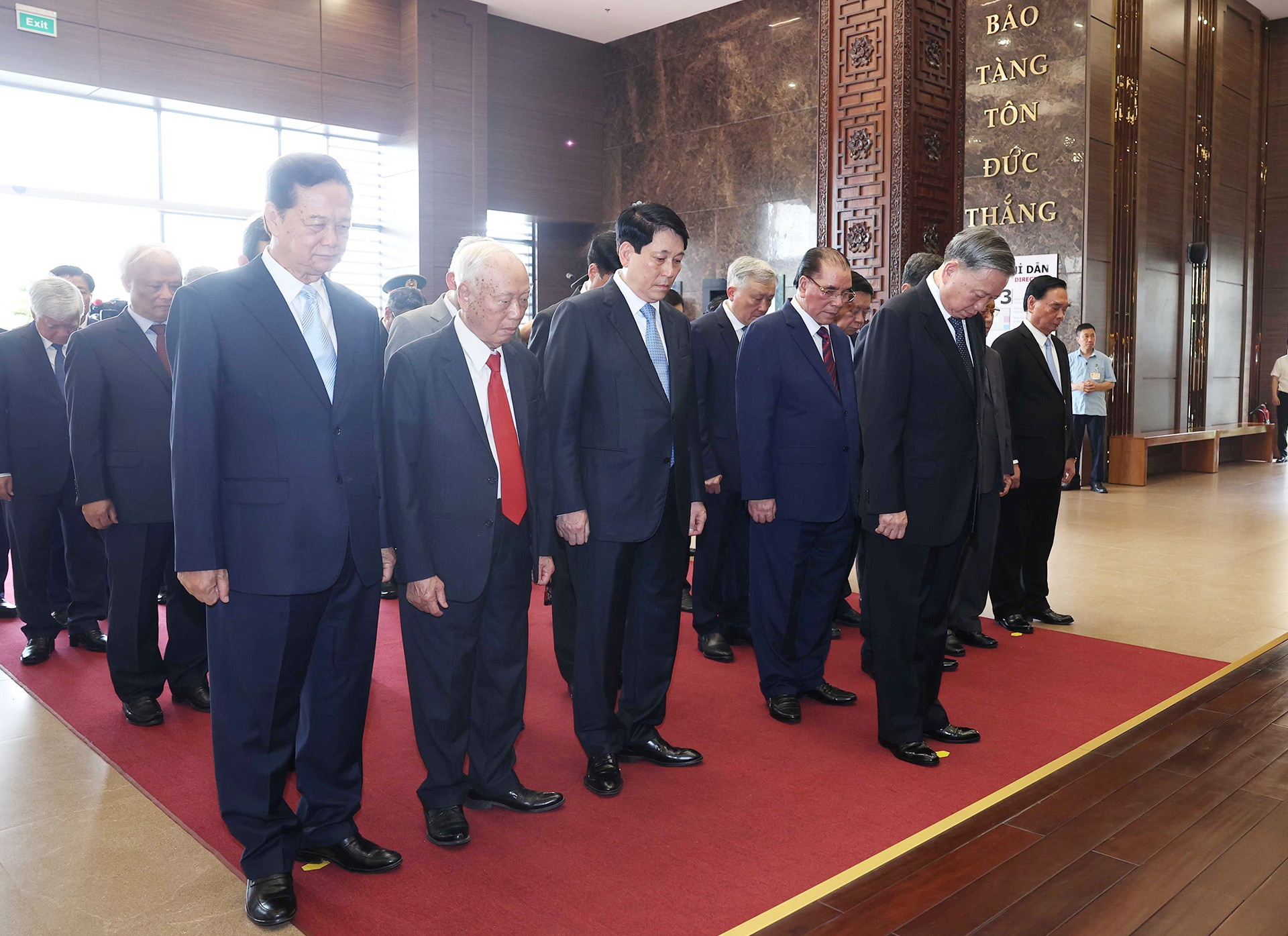 | Tổng Bí thư Tô Lâm cùng các lãnh đạo, nguyên Lãnh đạo Đảng, Nhà nước tưởng niệm Chủ tịch Tôn Đức Thắng. Ảnh: TTXVN |