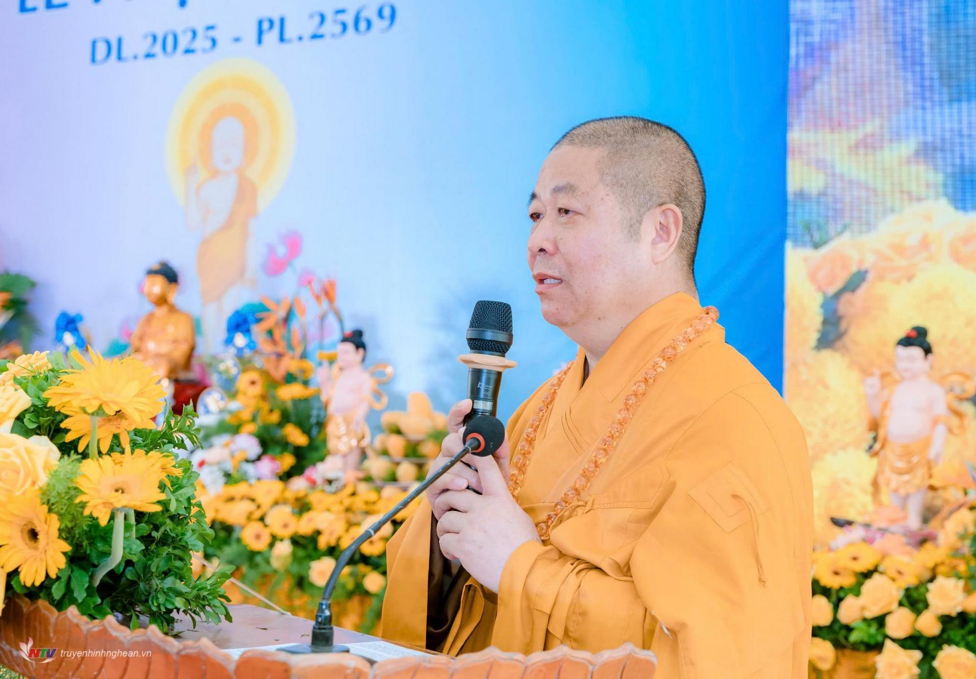 Tại buổi lễ, Hòa thượng Thích Thọ Lạc đã đọc Thông điệp Phật đản 2025 của Đức pháp chủ Giáo hội Phật giáo Việt Nam, nhấn mạnh vai trò to lớn của Phật giáo trong việc duy trì giá trị văn hóa dân tộc, đồng thời tôn vinh triết lý đoàn kết và bao dung của Phật giáo. Ni sư Thích Diệu Nhẫn cũng đã có bài phát biểu, kêu gọi các tăng, ni, phật tử trong tỉnh tiếp tục phát huy tinh thần đoàn kết, góp phần xây dựng quê hương phát triển, thịnh vượng.