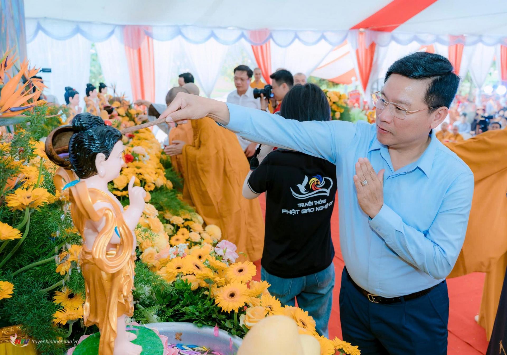 | Các đại biểu thực hiện nghi thức tắm Phật |